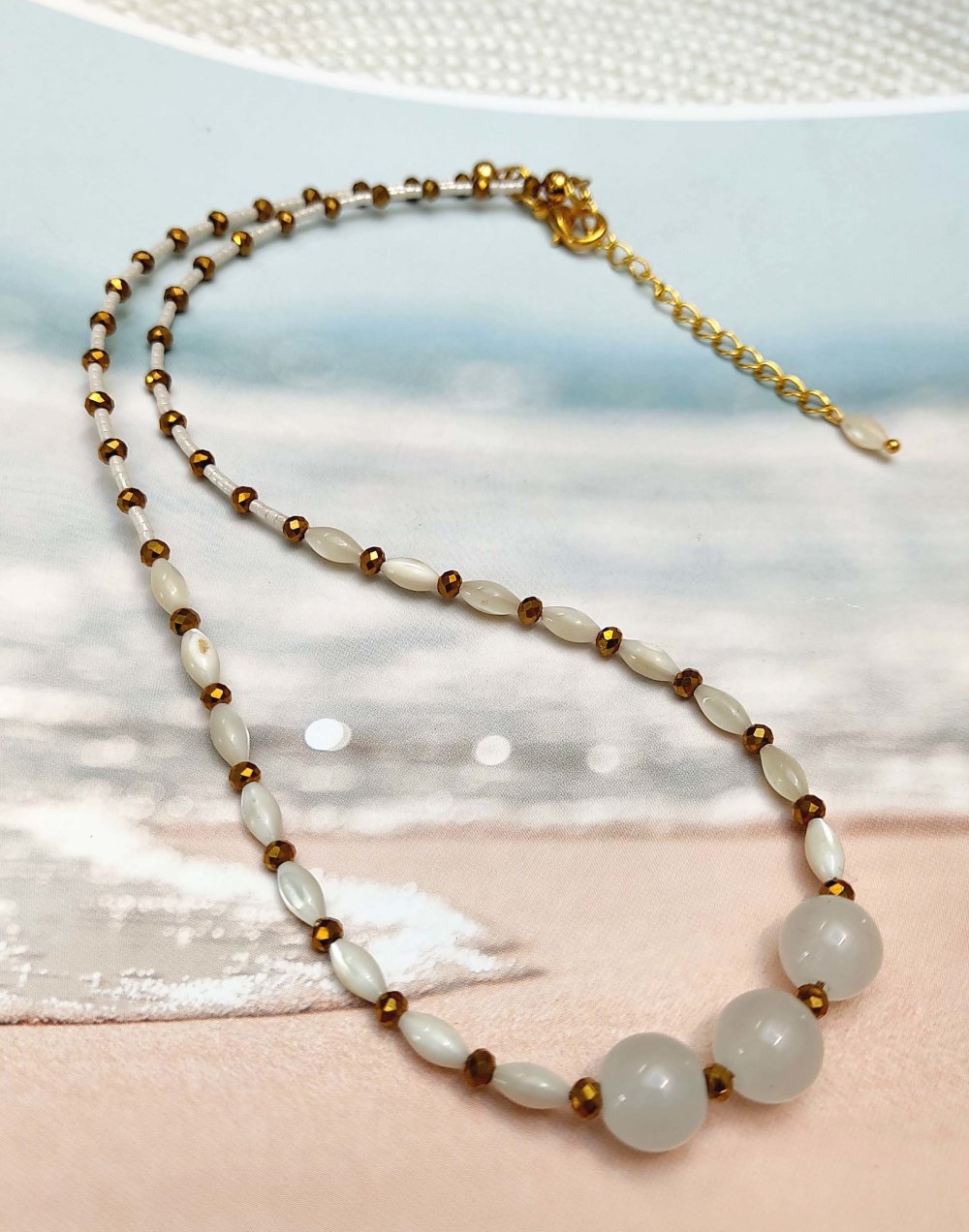 Perles blanches nacrées et perles dorées
