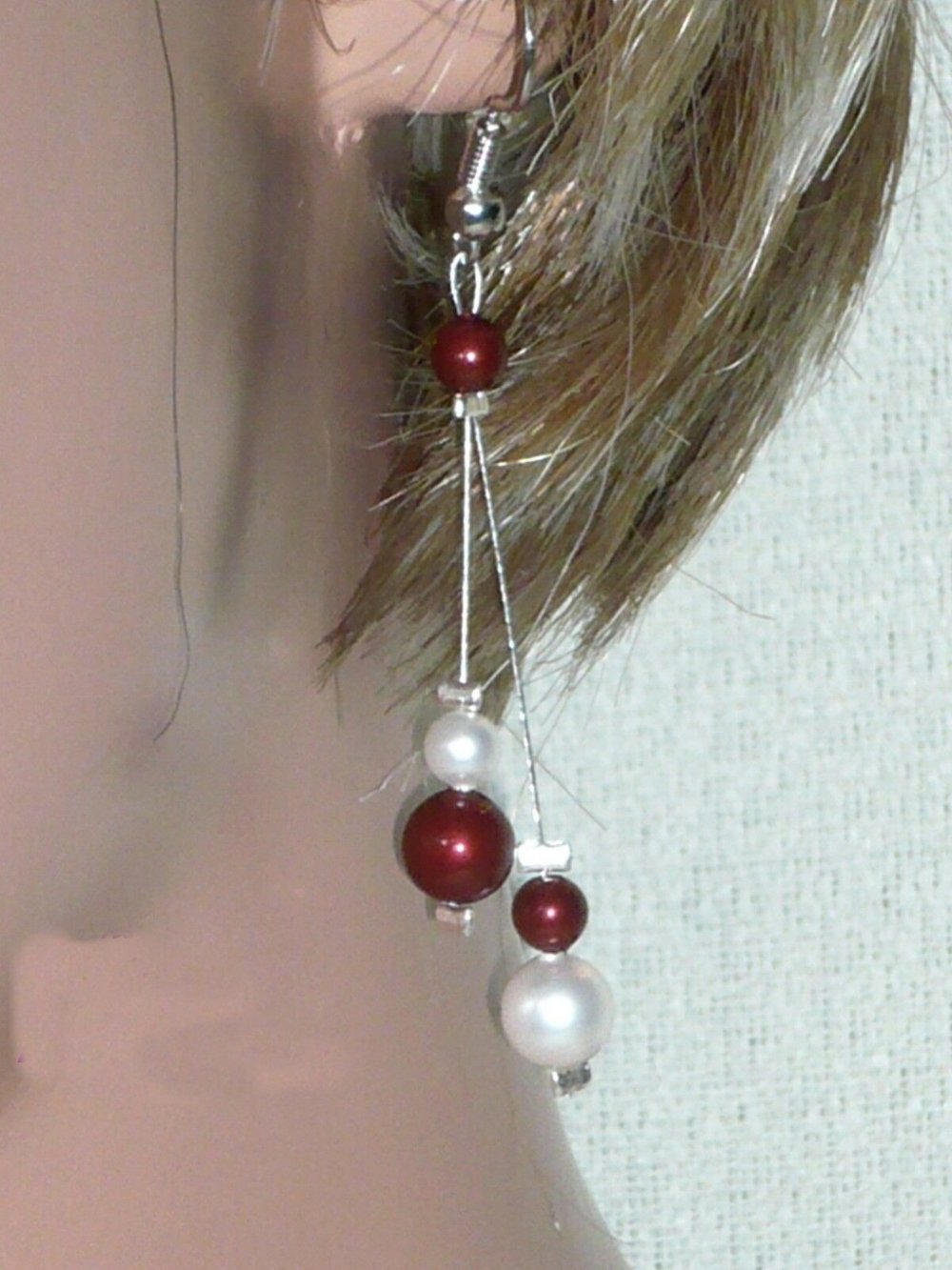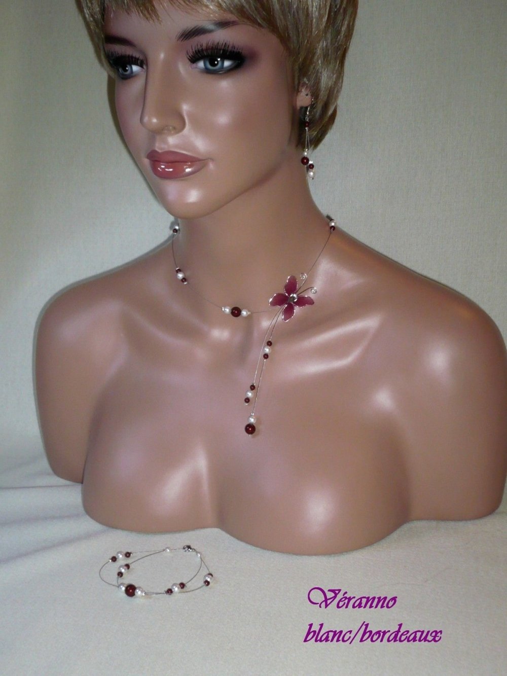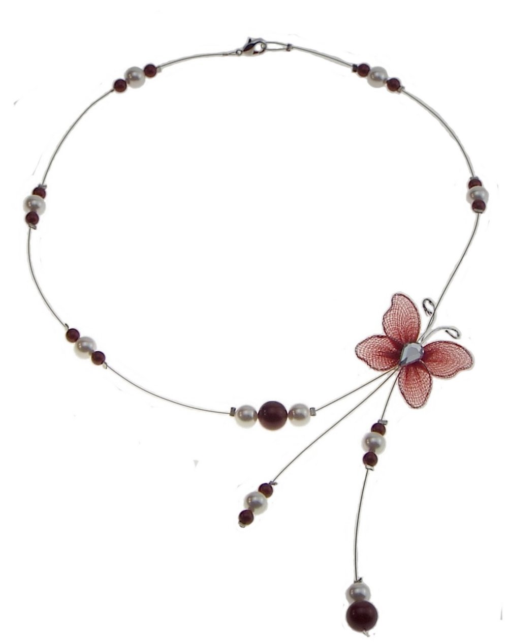Parure petit papillon N°2 blanc et bordeaux - Bijoux mariage. Parure mariée.