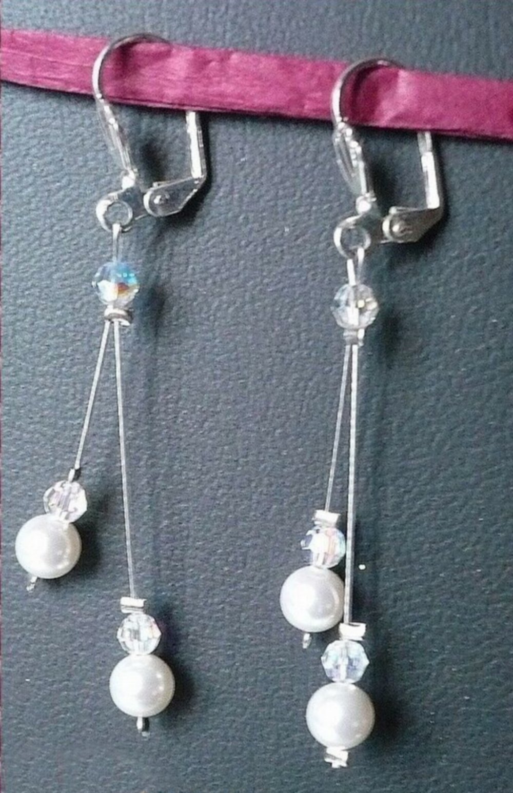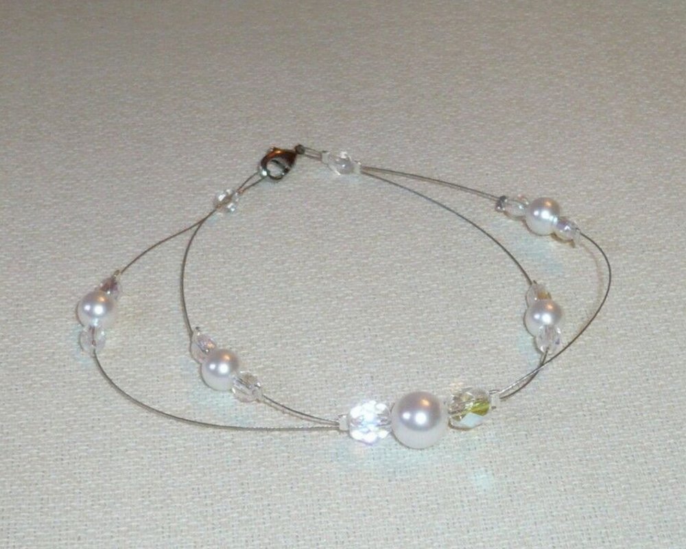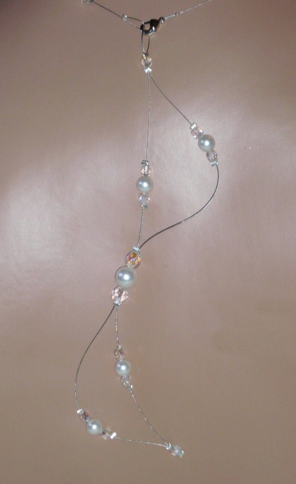 Fabriqué à la main, les bijoux sont surtout fait avec du fil câblé ou nylon, les perles sont en cristal de swarovski, verre de bohème.