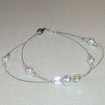 Composé de rondes nacrées 6, 8 mm en cristal de swarovski, de facette 4,6 mm en verre de bohème, sur fil câblé argenté, sans nickel.