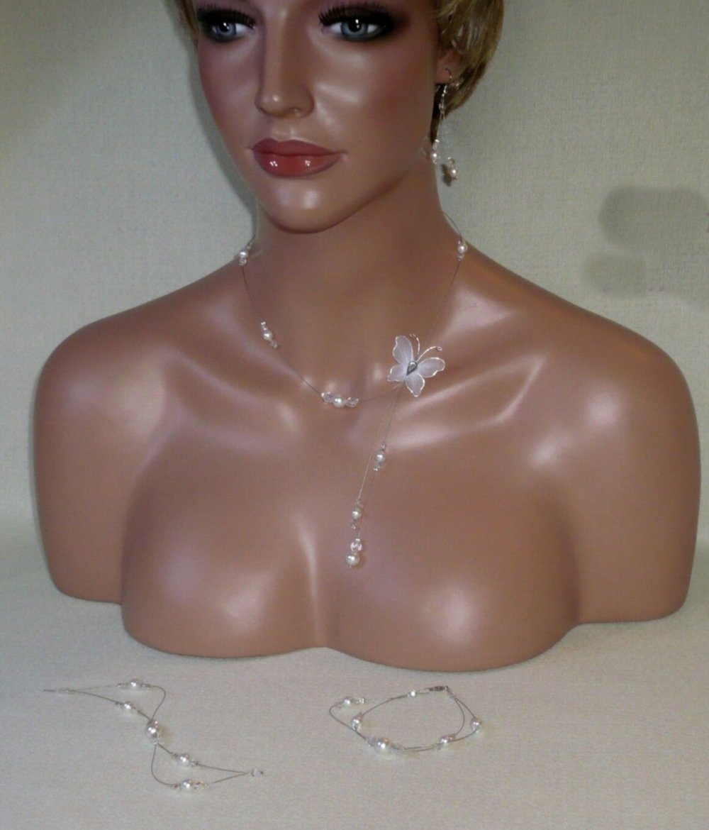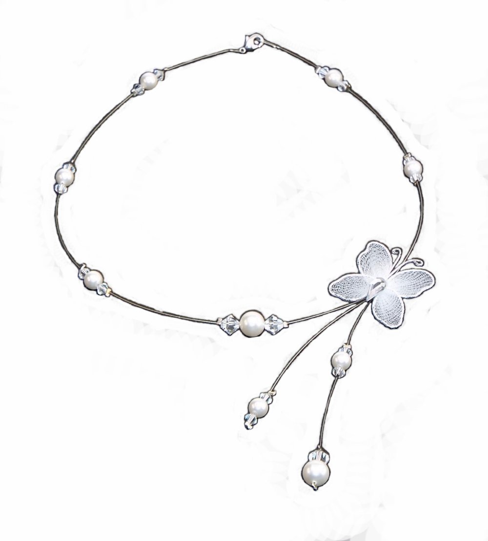 Parure petit papillon N°2 blanc et cristal - Bijoux mariage. Parure mariée.