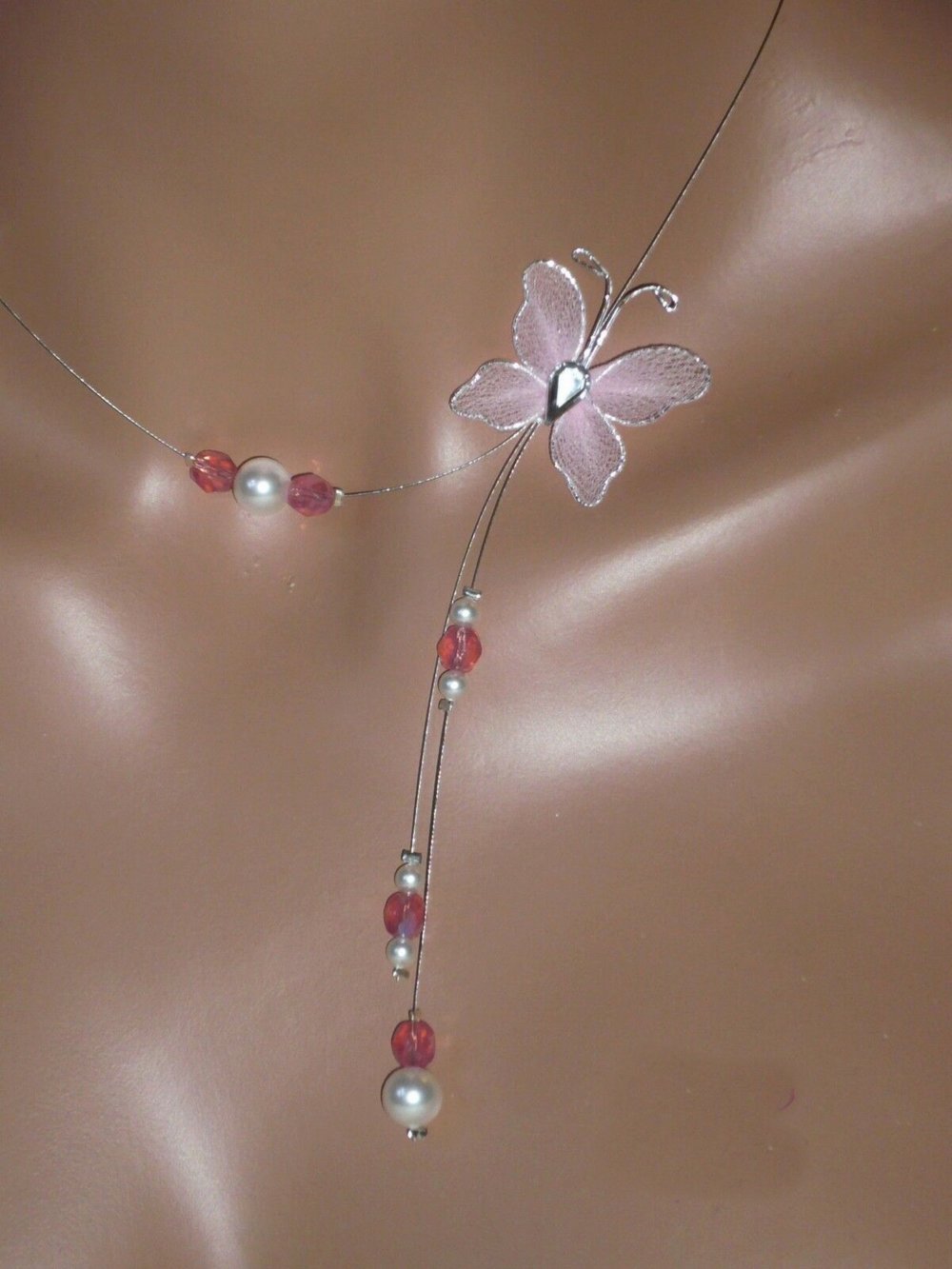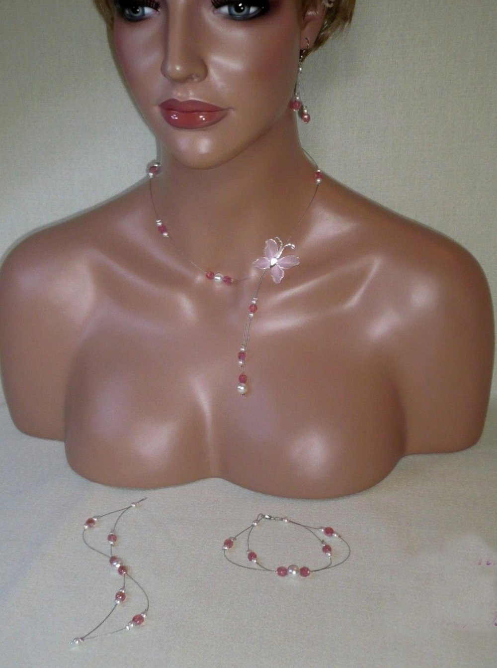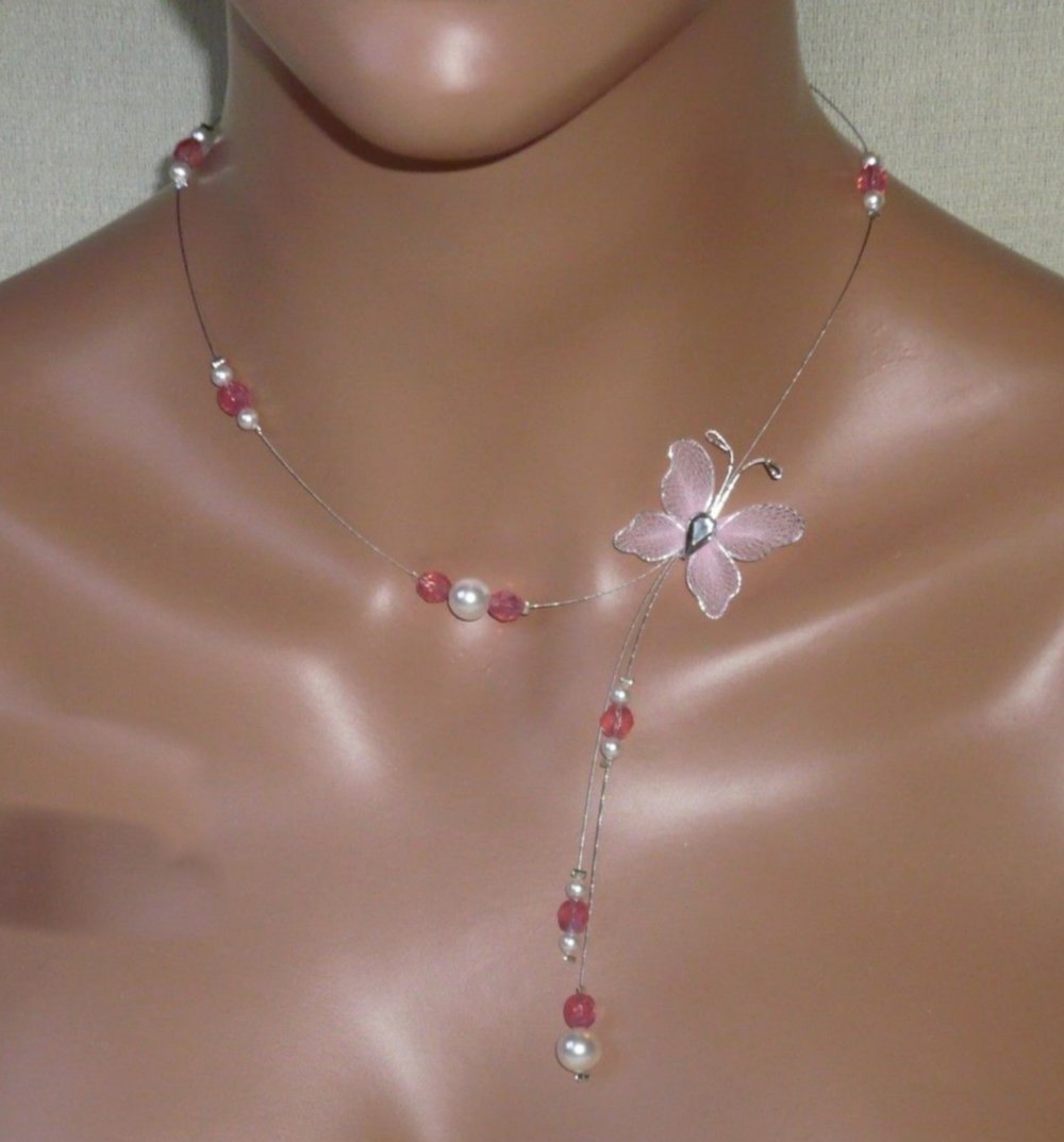 Parure petit papillon N°2 blanc et rose.