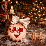 Parure collier fimo miss croc'coquine et boucles d'oreille biscuit fimo noel