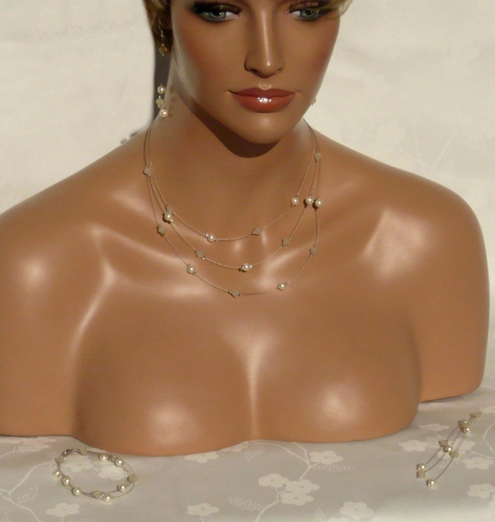 Parure trilemme n°1 ivoire n1 en cristal de swarovsky. Bijoux mariage,mariée,soirée.