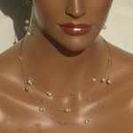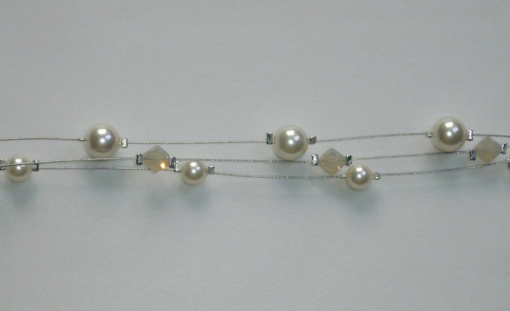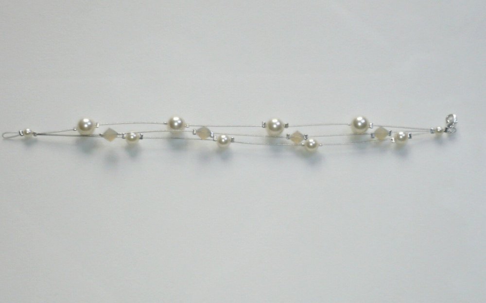 Fabriqué à la main, les bijoux sont surtout fait avec du fil câblé ou nylon, les perles sont en cristal de swarovski, verre de bohème.