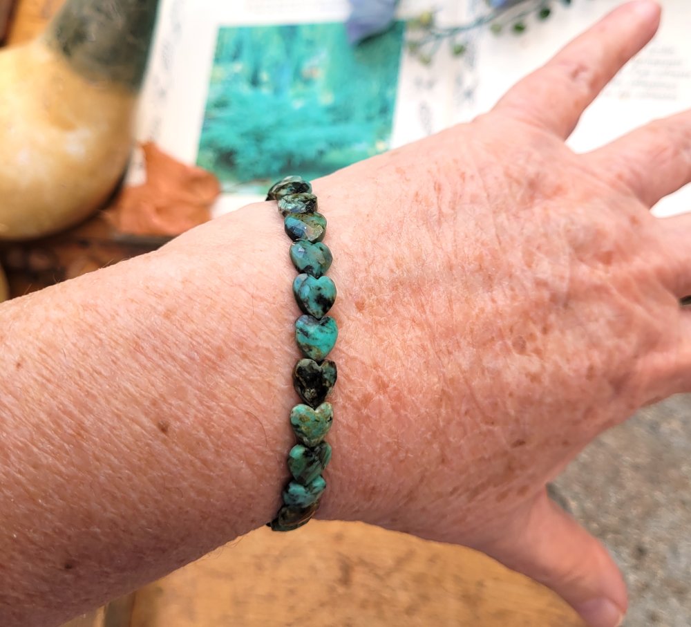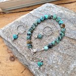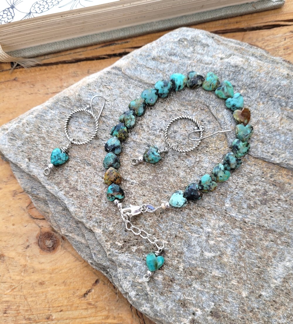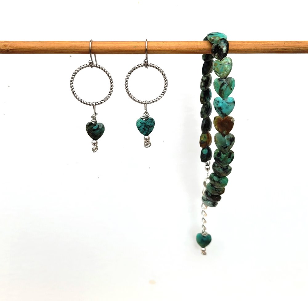 Un petit prix pour cette parure bracelet et boucles d'oreille shabby chic avec coeurs en turquoise .. -0.8 mm- , perles et fermoir en argent, et petites créoles et crochets inox pour les boucles d'oreille assorties !!!!!
