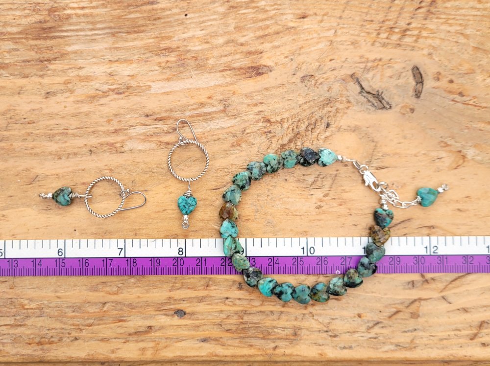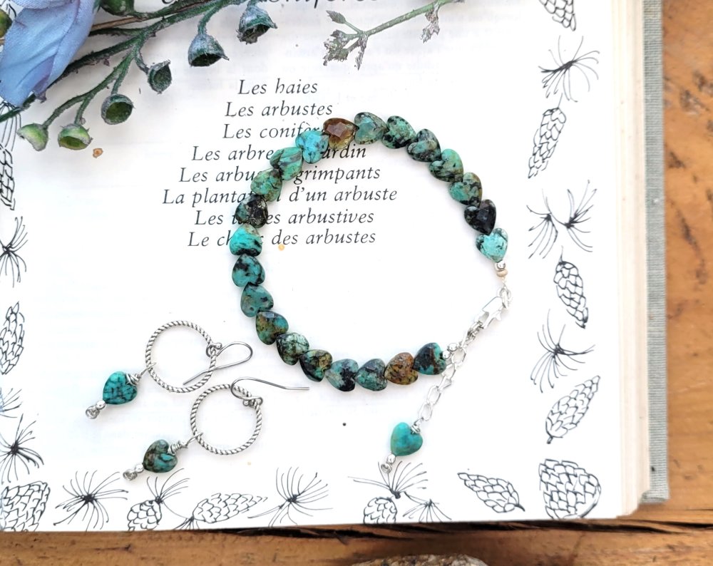 Un petit prix pour cette parure bracelet et boucles d'oreille shabby chic avec coeurs en turquoise ...