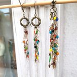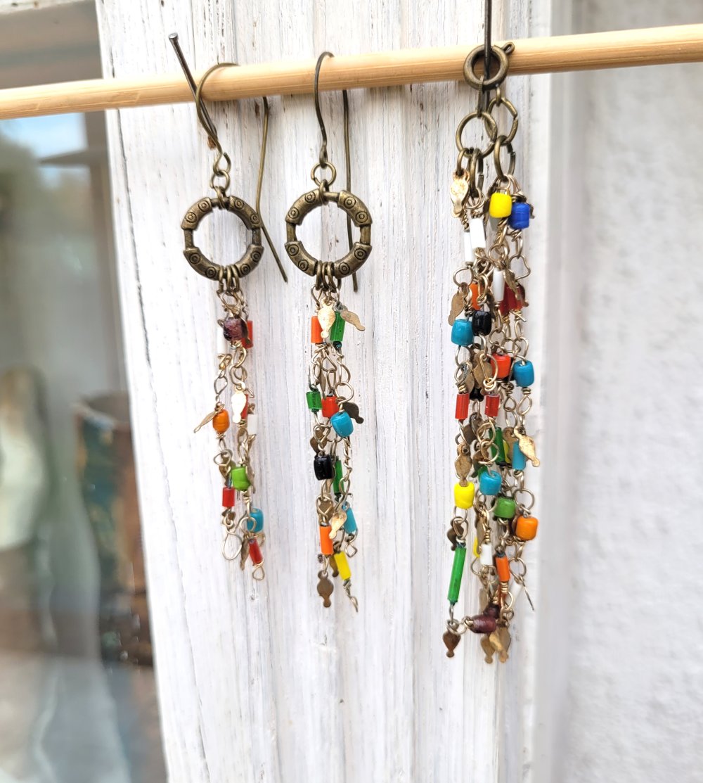 - les boucles d'oreille: les mêmes breloques multicolores, anneaux laiton .