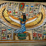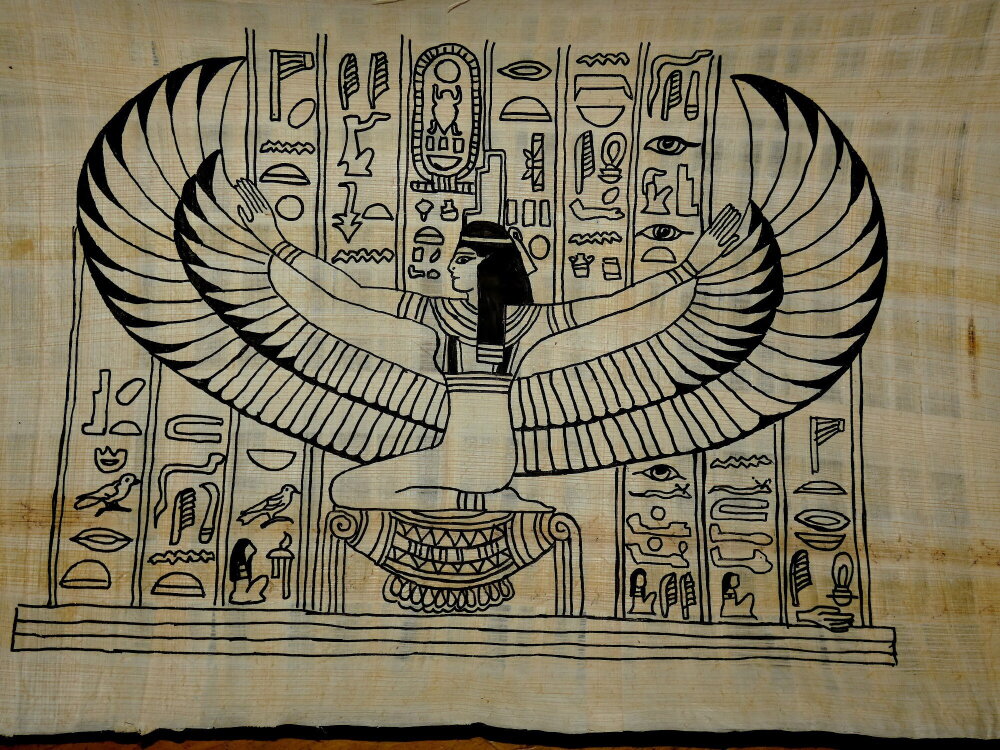 Peinture Déesse Isis Ailée Egypte Antique de 35 cm x 25 cm - Peinture Réalisée à la Main sur Papyrus Peintures Acryliques Couleurs et Or