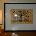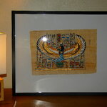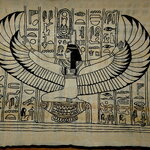 Je vous propose une peinture inspirée des peintures de l'Egypte antique. J'ai réalisé cette peinture "à main levée" sur une véritable feuille de papyrus provenant d'Egypte.