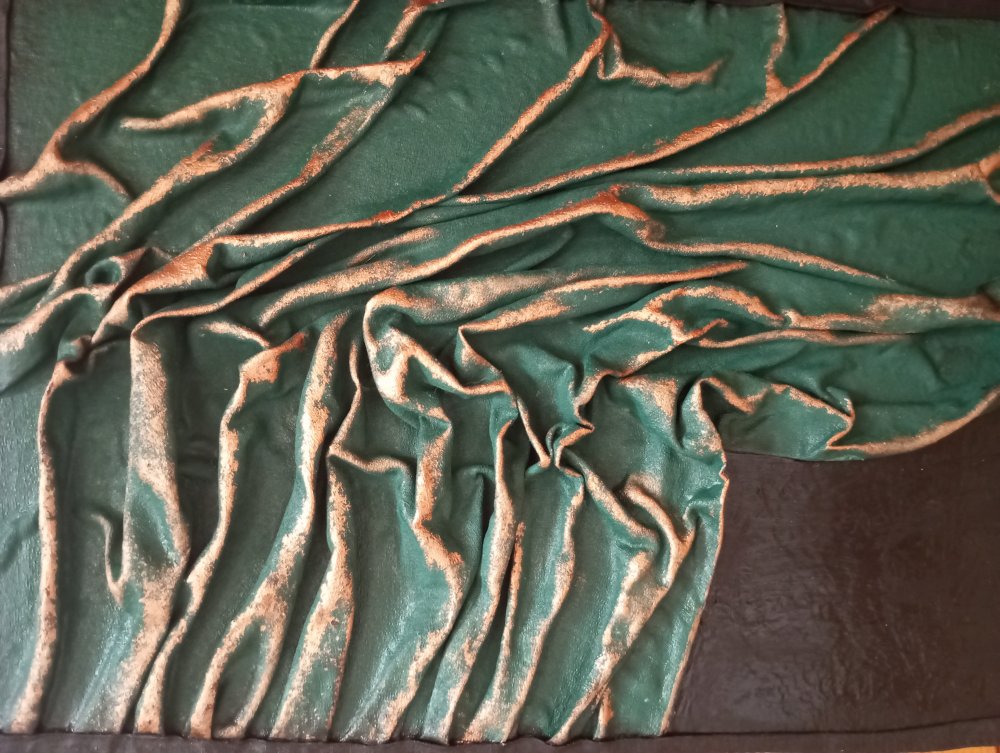toile drapée collée, vert et doré