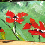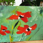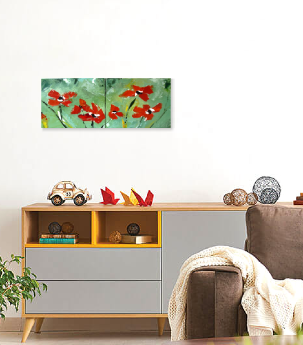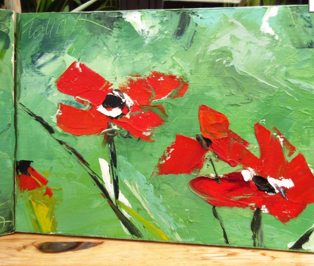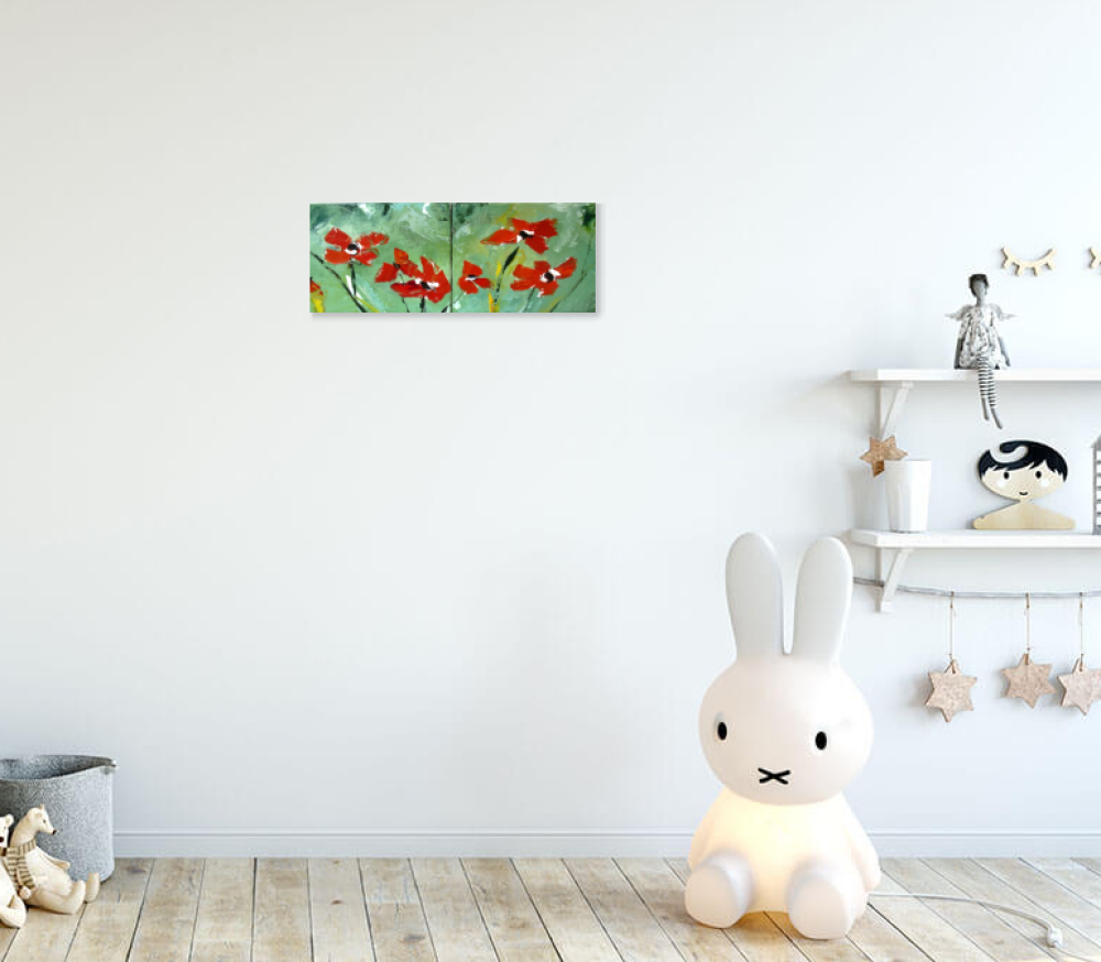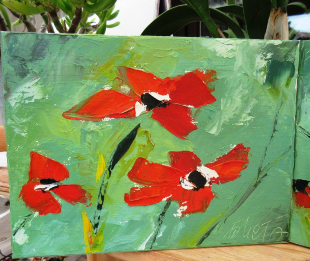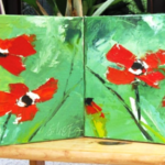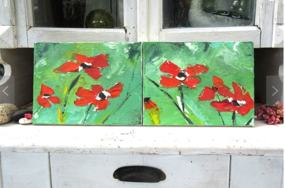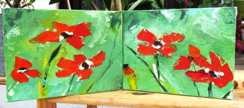Equilibre I & II : diptyque Peintures figuratives fleurs coquelicots huile au couteau sur châssis avec toile de lin = 2 x 18/24 cm = 18/48 cm.