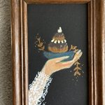 Petite peinture d’une main et d’une religieuse dans un cadre de brocante