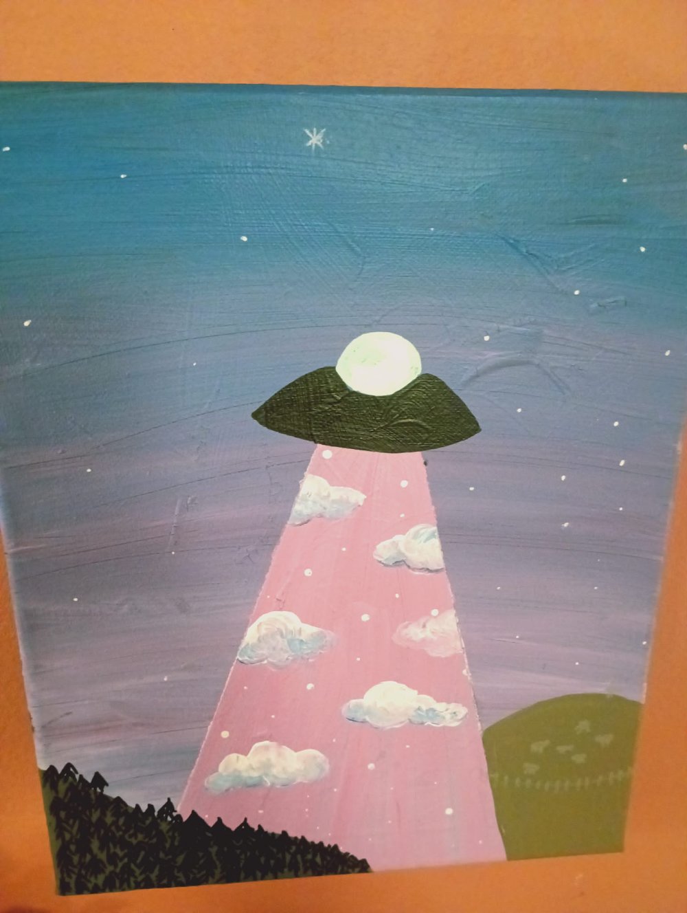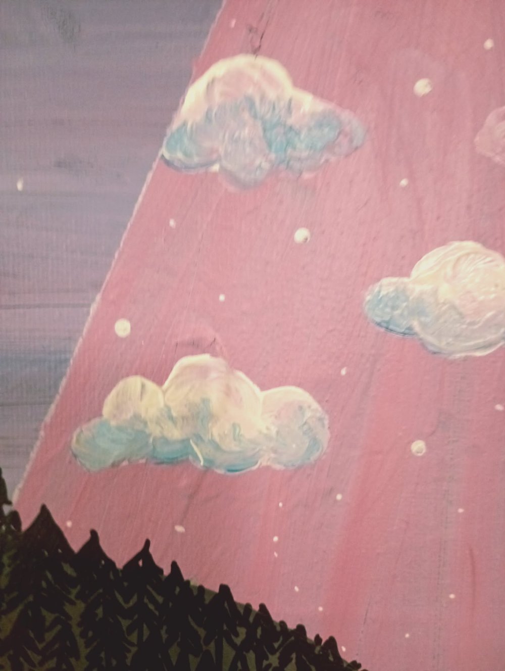 Tableau fait main à l'acrylique, sur une toile recyclée