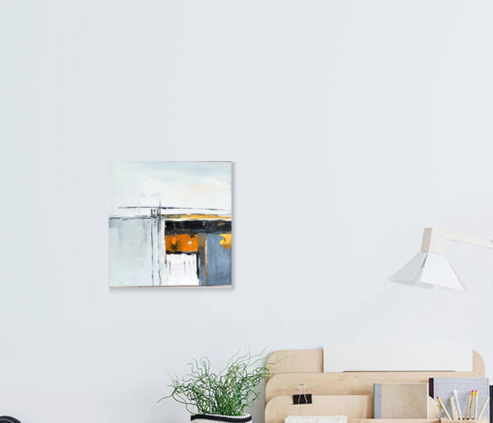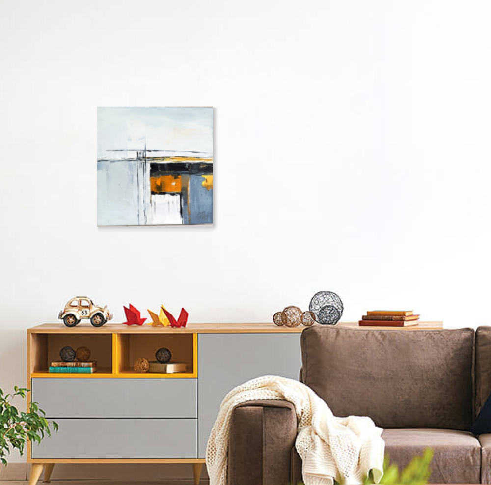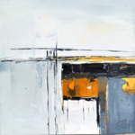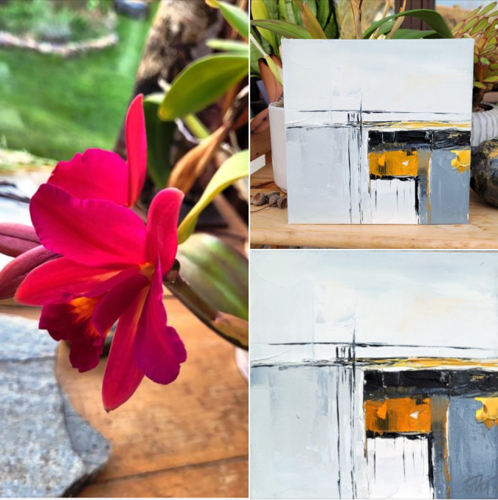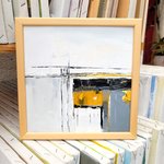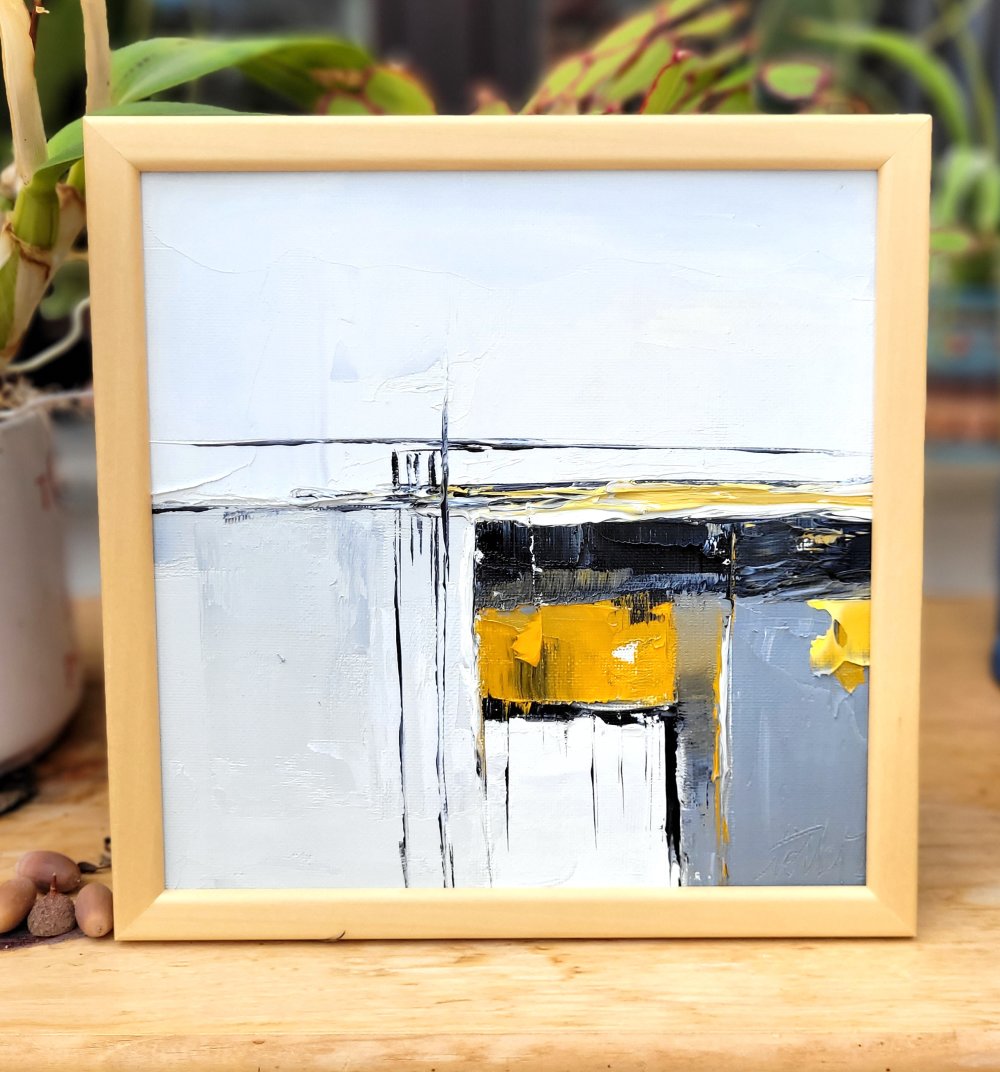 "Evocation Sensible": Peinture abstrait lyrique à l'huile au couteau sur carton entoilé avec cadre .: dimensions de la toile = 20/20 cm ou 8/8 inches. ; avec le cadre = 22/22 cm ou 8.8/8.8 inches.