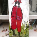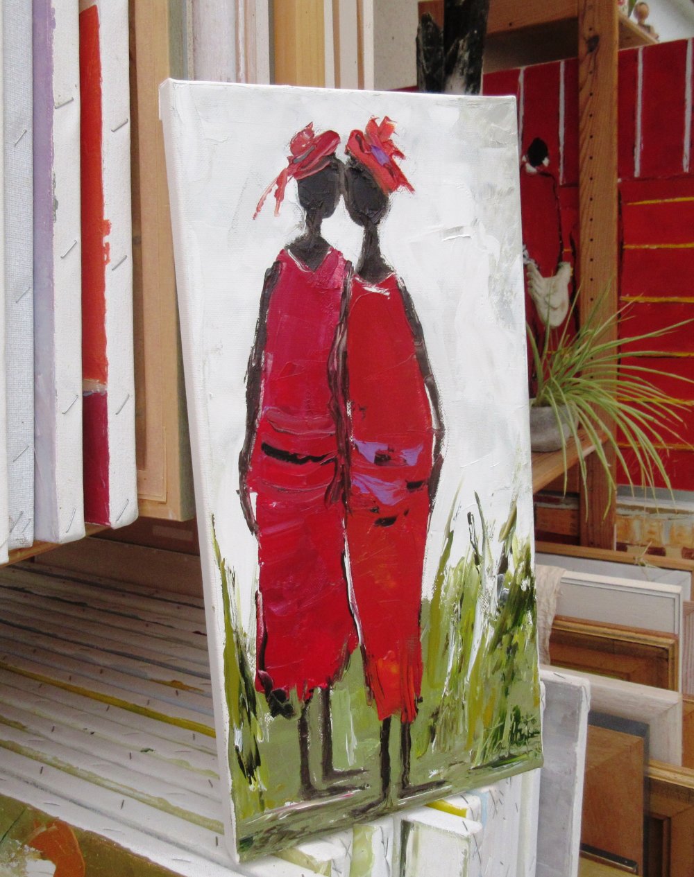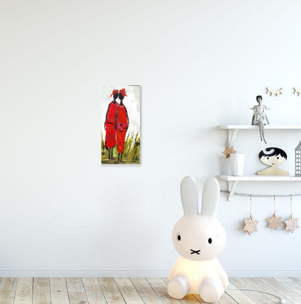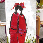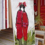 "Fleurs d'Amitiés" : Peinture figurative de personnages, peinture à l'huile au couteau sur toile de coton sur châssis lin : dimensions : 20/40 cm ou 8/16 inches