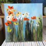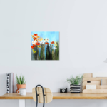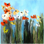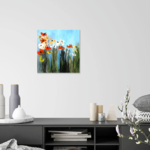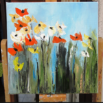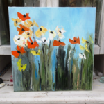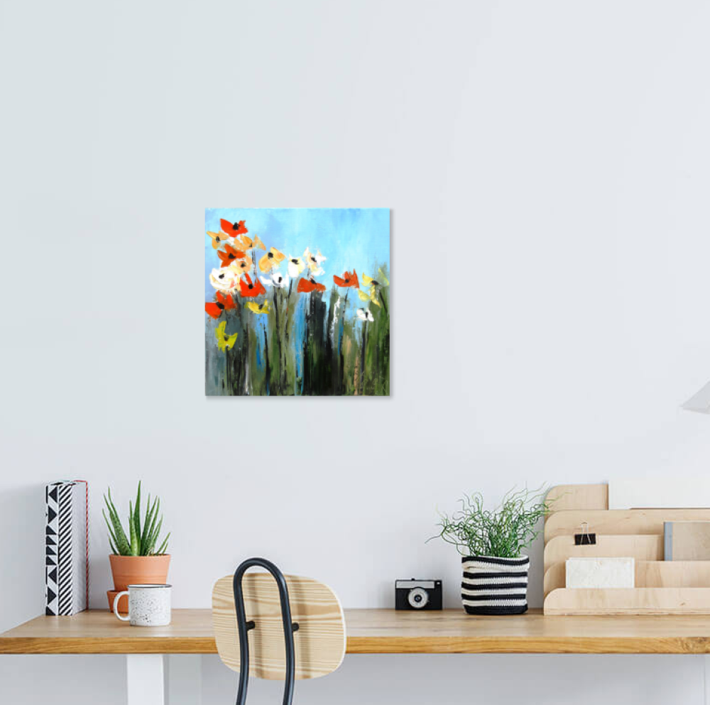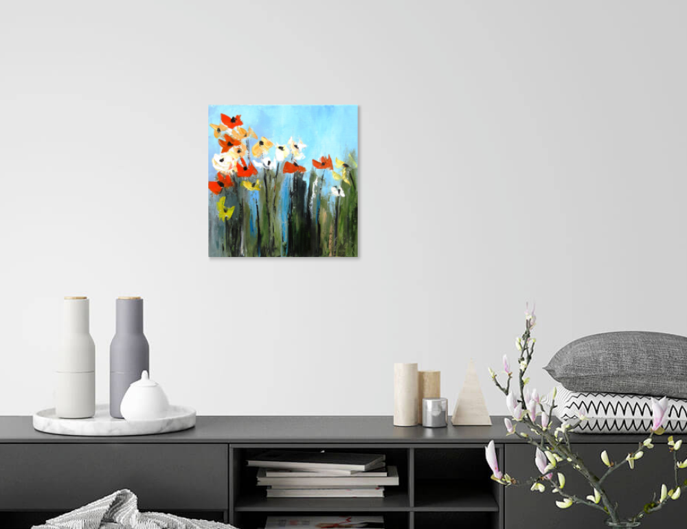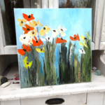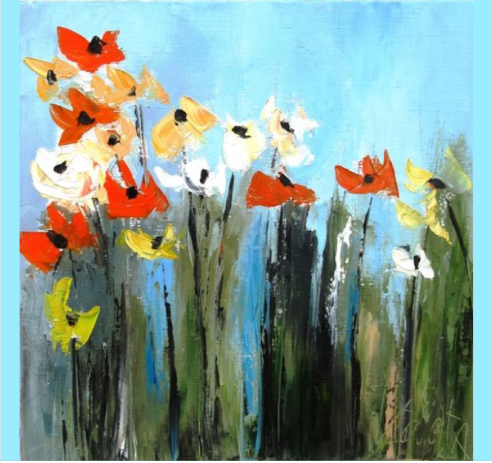 Peinture figurative florale : "Faire Rêver Le Réel " ...fleurs des champs: peinture à l'huile au couteau sur toile de lin : dimensions = 40/ 40 cm ou 16/ 16 inches. La dernière photo montre les côtés de la toile= agrafes.