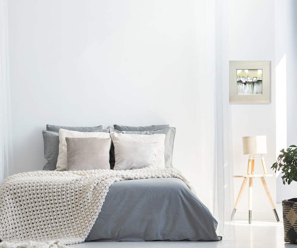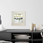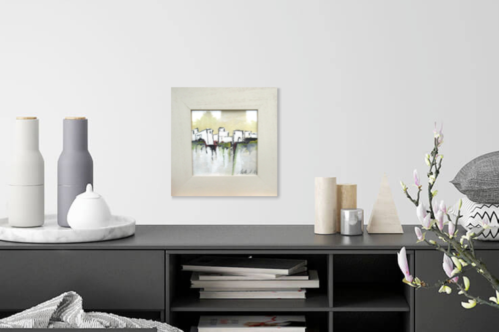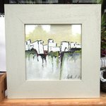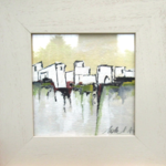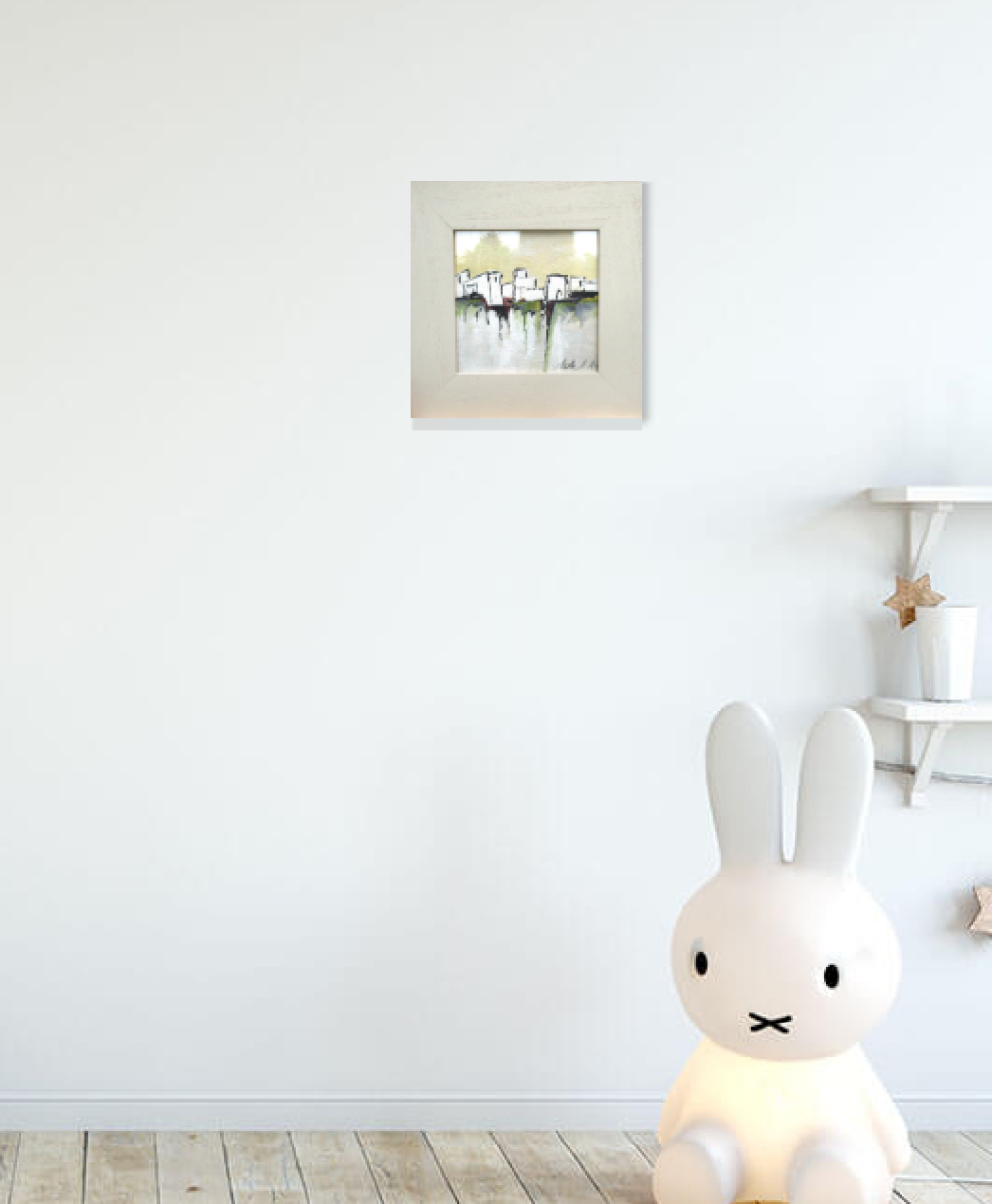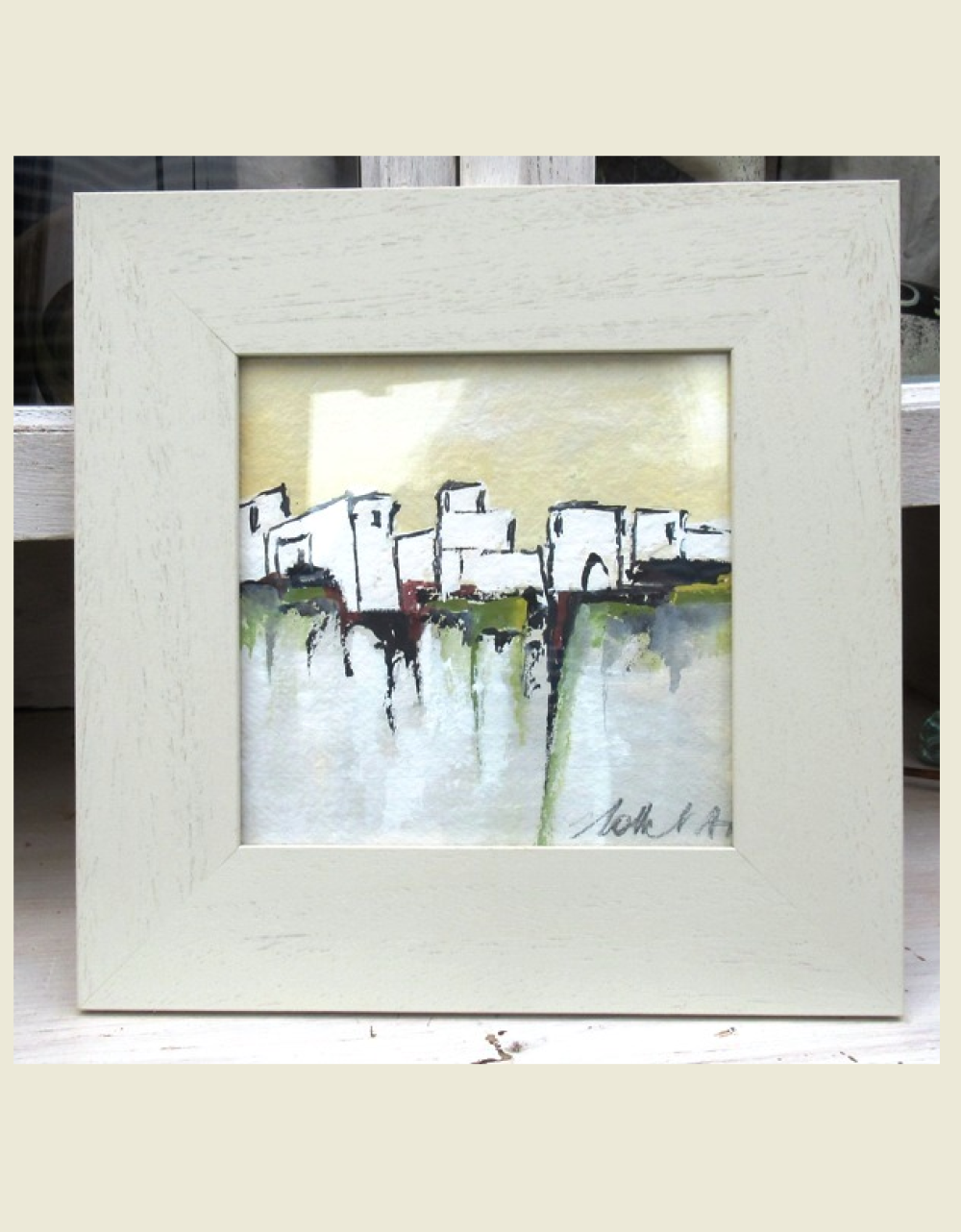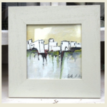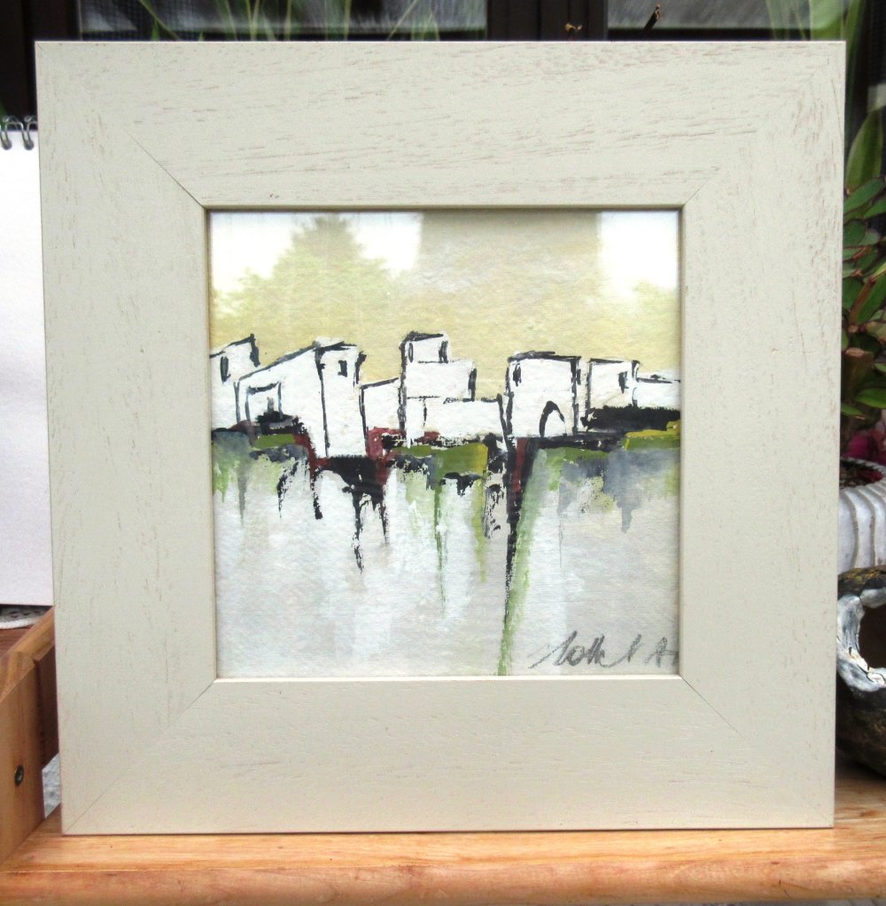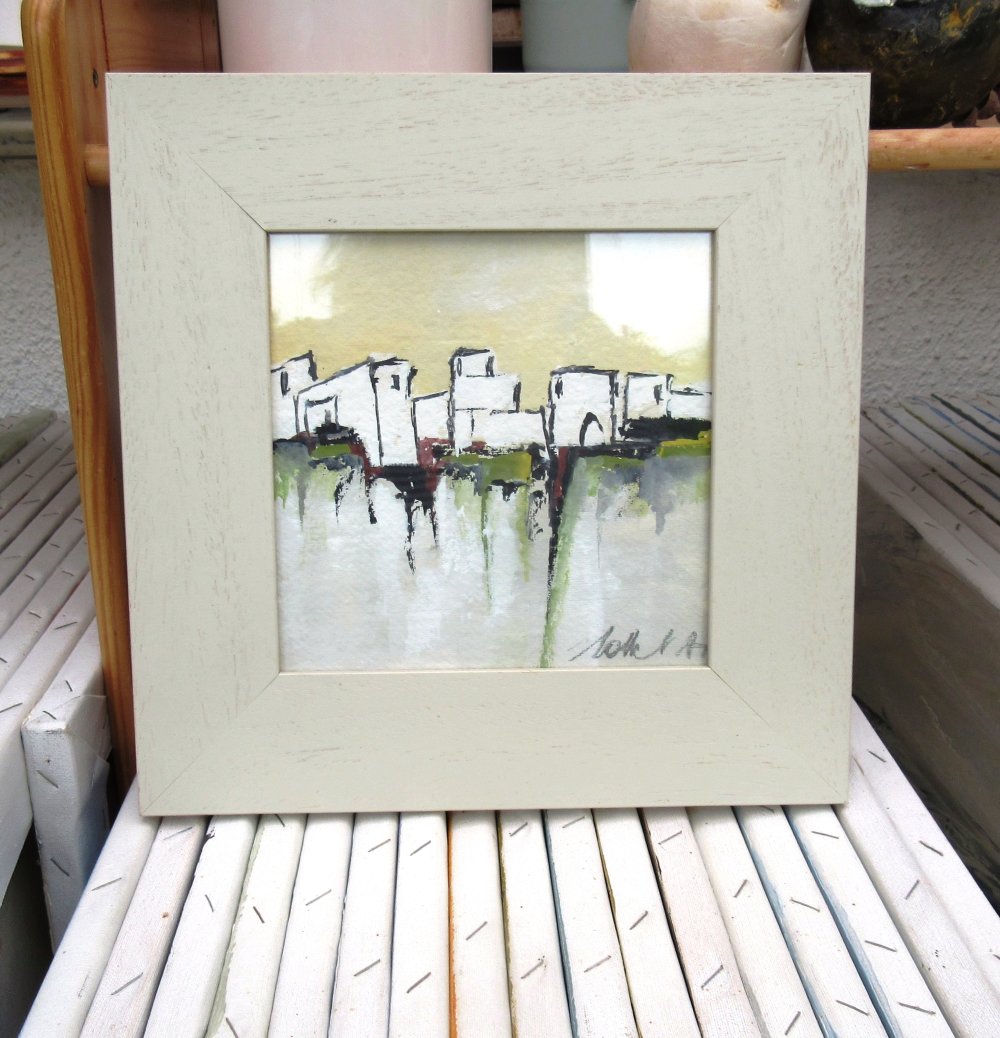 "Lumière Du Matin" : peinture gouache "paysage du midi - abstrait lyrique - sur carton Canson: dimensions de la gouache : 18/18 cm ; présentée dans un cadre en bois avec vitre .. Dimensions cadre compris : 29/29 cm ou 11,6/11,6 inches.