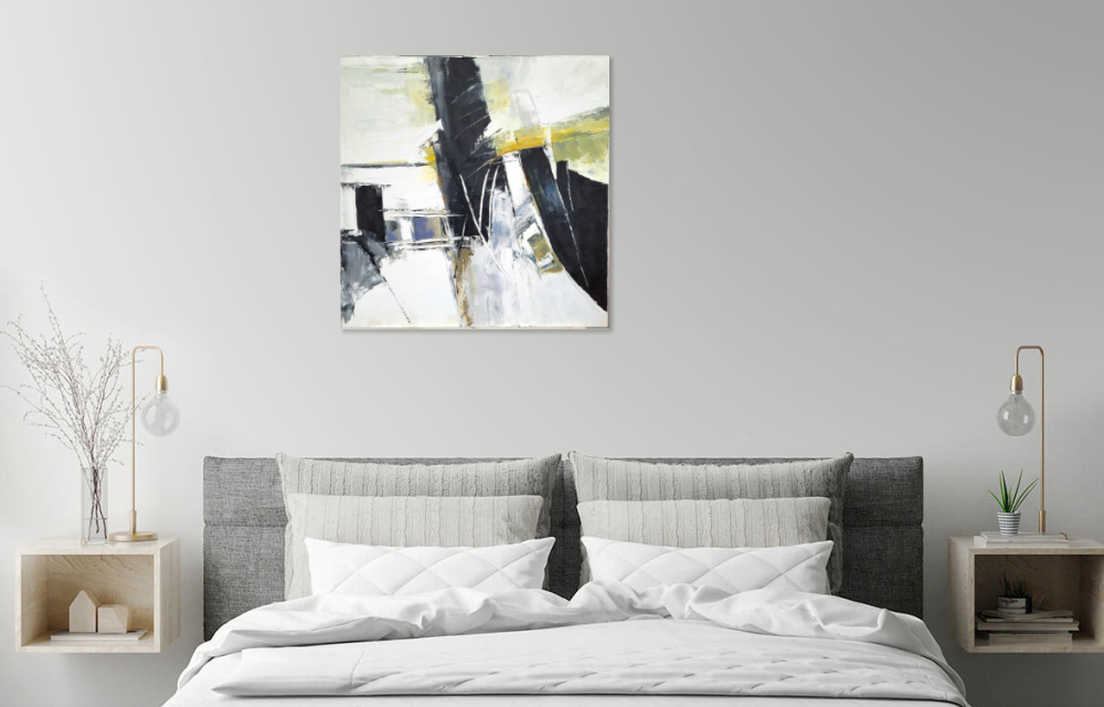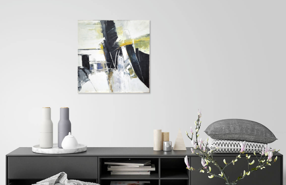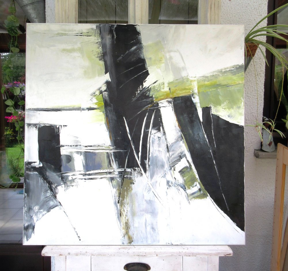 Peinture abstraite lyrique: peinture à l'huile au couteau sur toile de lin : dimensions = 90/90 cm ou 36/36 inches. La dernière photo montre les côtés de la toile = agrafes.