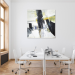 C’est une peinture qui a délaissé l’anecdote et le charme pour se construire à travers une expression abstraite et plus dépouillée ; qui serait devenue nécessité intérieure , absente de limites ; faite de gradations de nuances ; de contrastes calculés ; d’ horizons de liberté et d’espaces conquis.