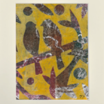 Œuvre Originale "Deux oiseaux et un poisson" - Monotype Acrylique Unique (Série "Les Oiseaux")