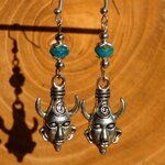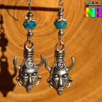 Je vous propose de découvrir 1 superbes paire de pendants d'oreilles d'inspiration africaine. Ces pendants originaux aux notes tribales ethniques ont été réalisées à la main à partir de pendant en laiton plaqué argent représentant des masques africains sculptés avec de superbes détails en relief. Les pendants ont été agrémentés de perles en cristal Tchèque facetté.