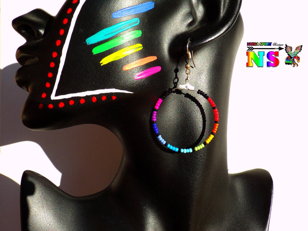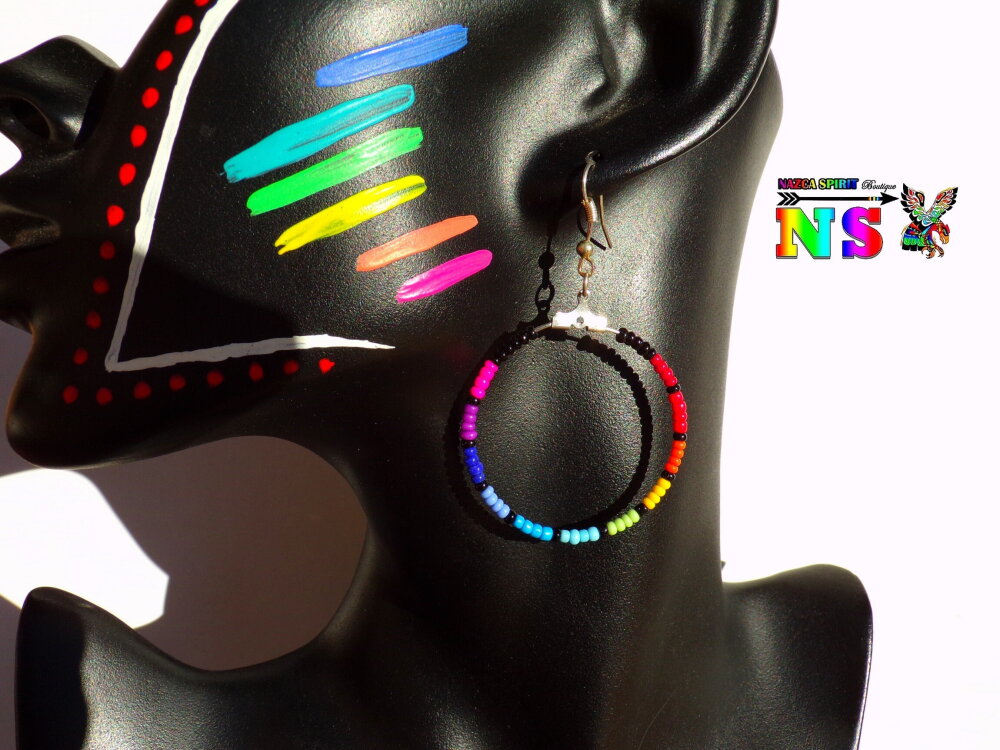 Pendants créoles inspiration bijou Navajo - Boucles d'oreilles en perles de rocailles multicolores - Bijou amérindien artisanal fait main.