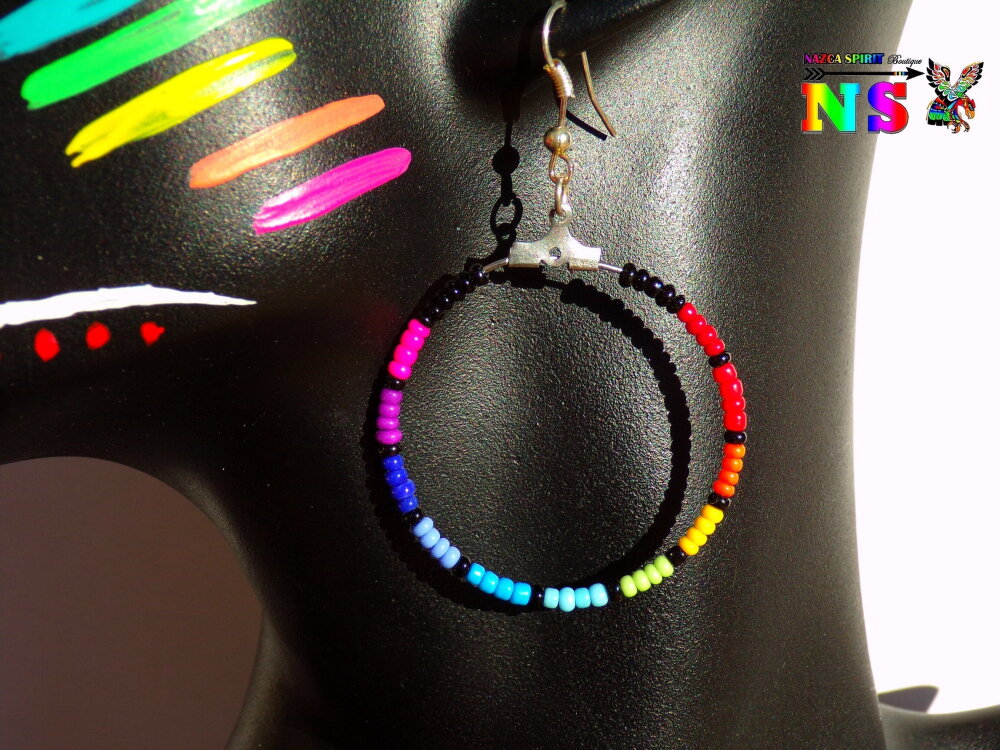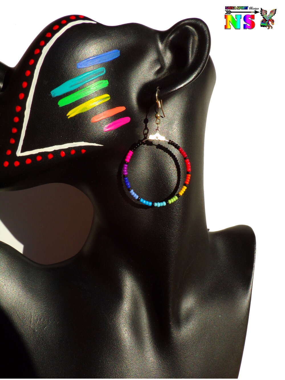Pendants créoles en Perles de Rocaille - Boucles d'oreilles rocailles en Verre multicolore - Bijou Tribal Ethnique Artisanal Fait Main