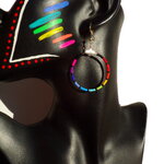 Pendants d'oreilles forme créoles inspiré des bijoux Navajo réalisés à partir de créoles en acier inoxydable couleur argent et de perles de rocaille en verre.
