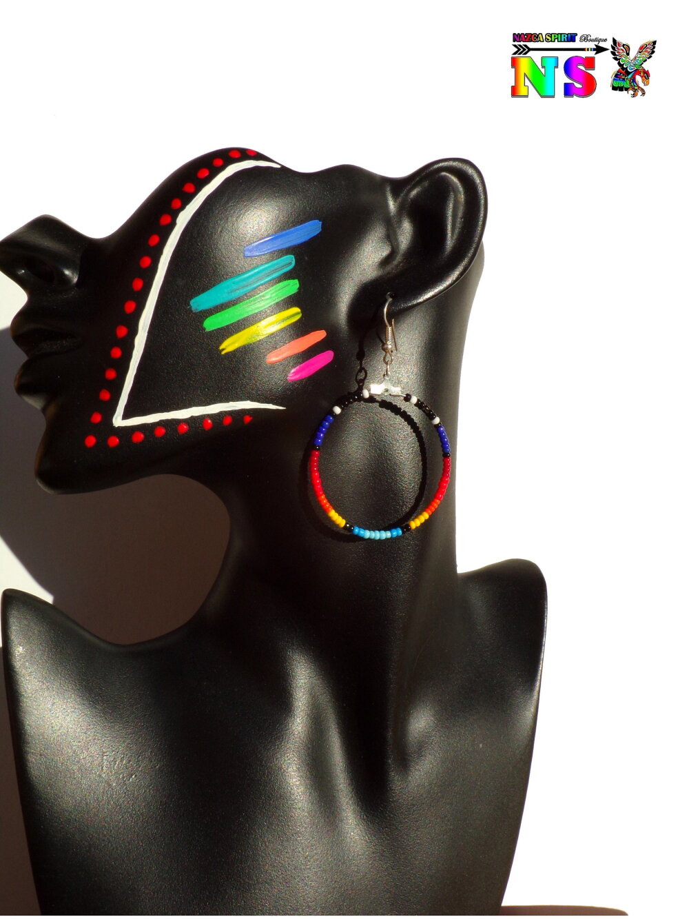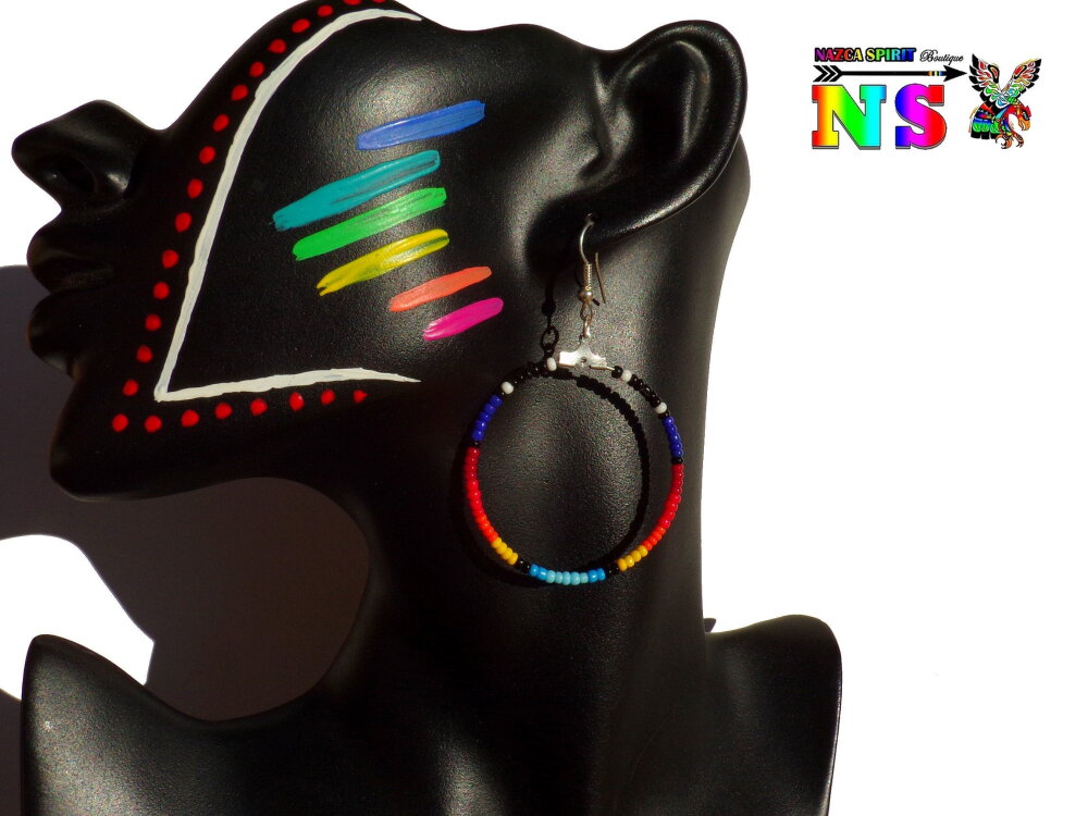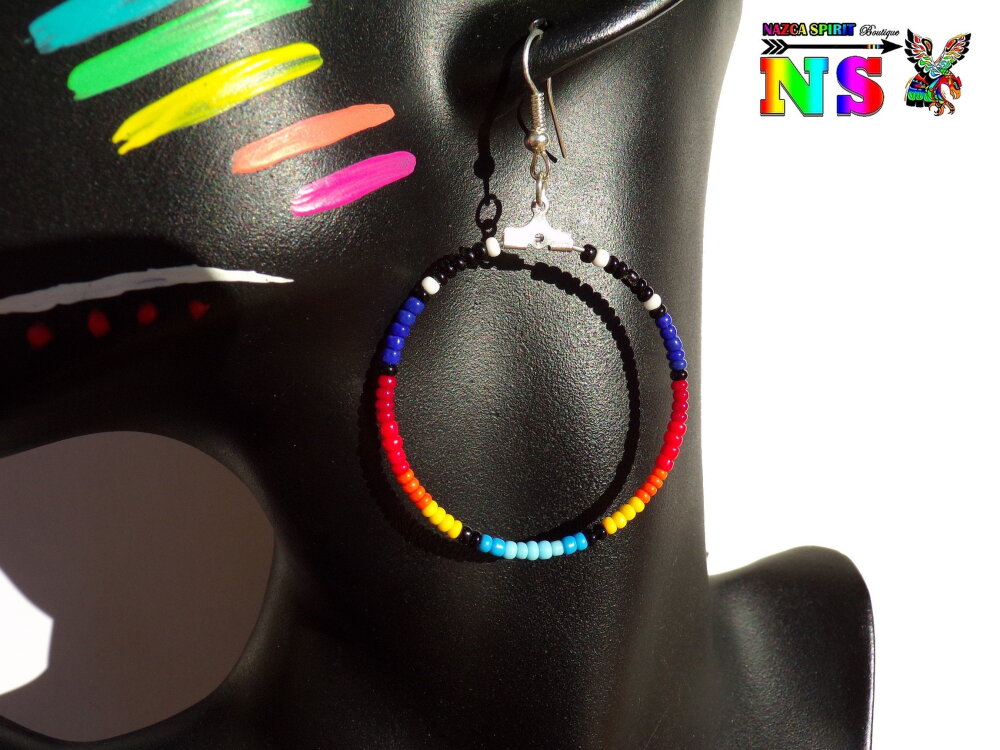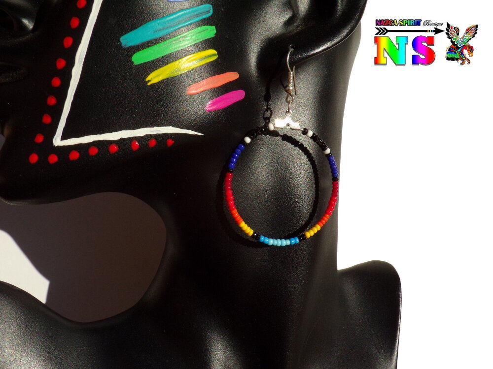 Pendants créoles inspiration bijou Navajo - Boucles d'oreilles en perles de rocailles multicolores - Bijou amérindien artisanal fait main.
