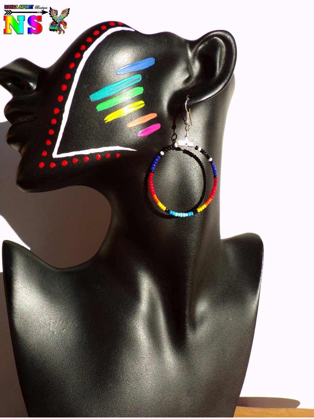Pendants créoles en Perles de Rocaille - Boucles d'oreilles rocailles en Verre multicolore - Bijou Tribal Ethnique Artisanal Fait Main