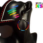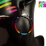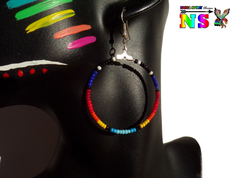 Pendants d'oreilles forme créoles inspiré des bijoux Navajo réalisés à partir de créoles en acier inoxydable couleur argent et de perles de rocaille en verre.