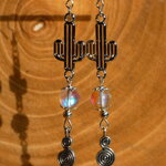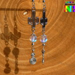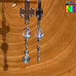 Ces pendants ont donc été réalisés à partir de connecteurs forme cactus en cuivre plaqué argent ciselés, de perles en pierres fines de cristal de roche iridescent angel aura et de crochets d'oreilles en cuivre plaqué argent ayant subi un traitement hypoallergénique.