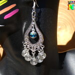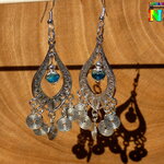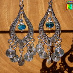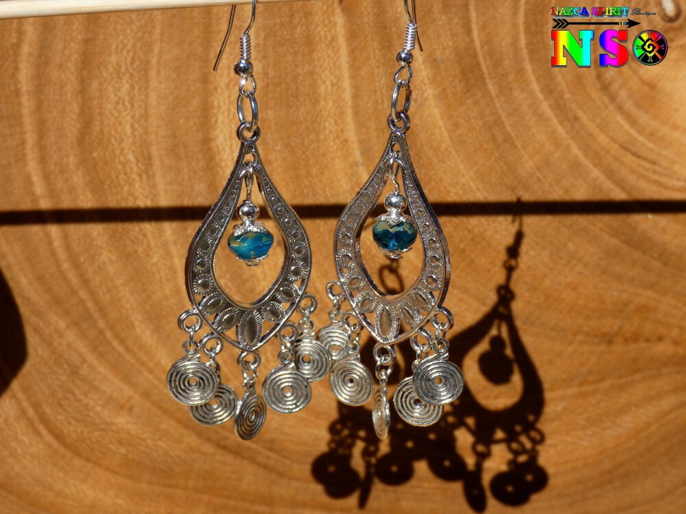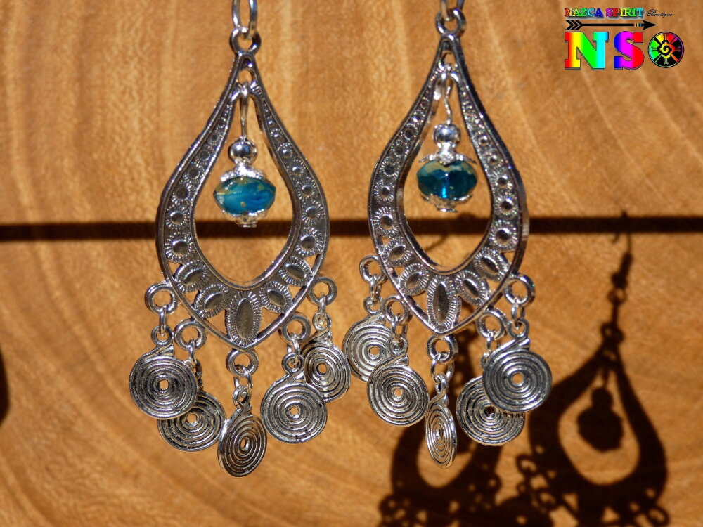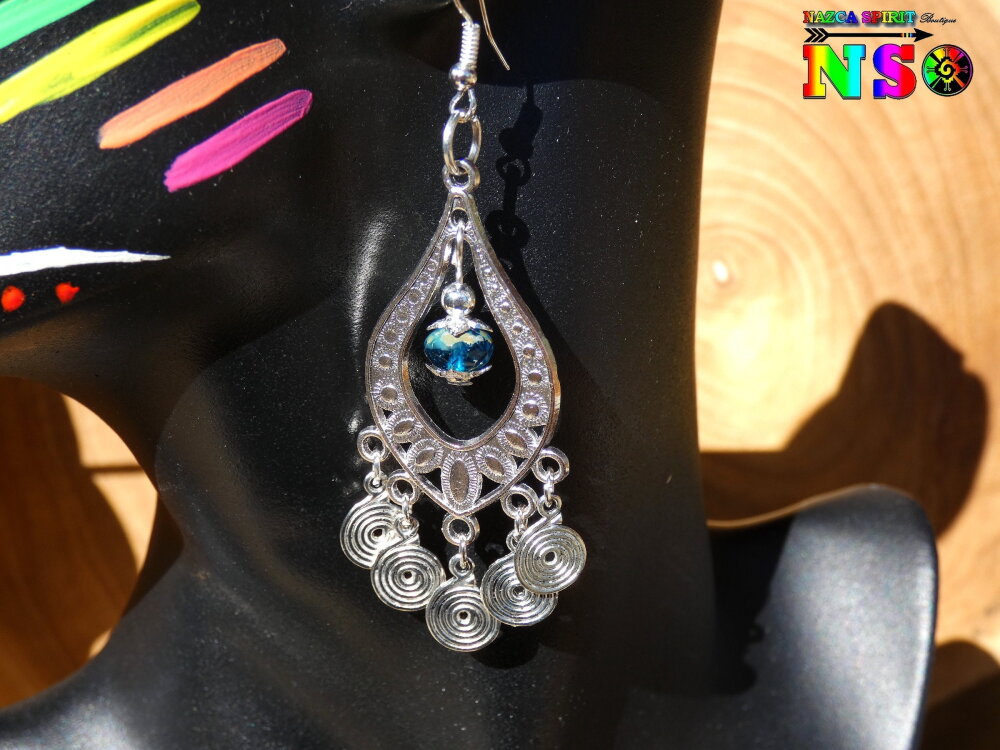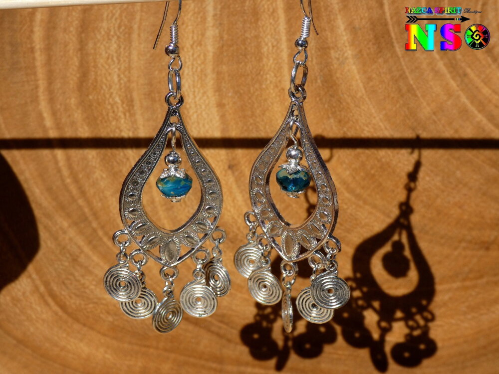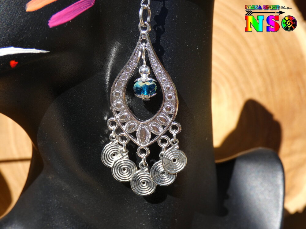 Pendants Ethniques Plaqué Argent et Cristal de Bohème Bleu Turquoise - Bijou Bohème Ethnique Fait Main Inspiration Pérou-Création Artistique