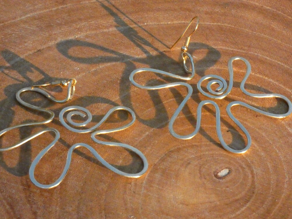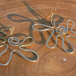 Les pendants ont été réalisés à partir d'un fil de laiton de 1.5 mm de diamètre que j'ai façonné à la main, façonné en forme de fleurs, puis que j'ai martelé, poncé et poli pour obtenir une jolie finition or miroir afin d'apporter une belle touche précieuse semblable à de l'or pour un prix bien moins couteux.