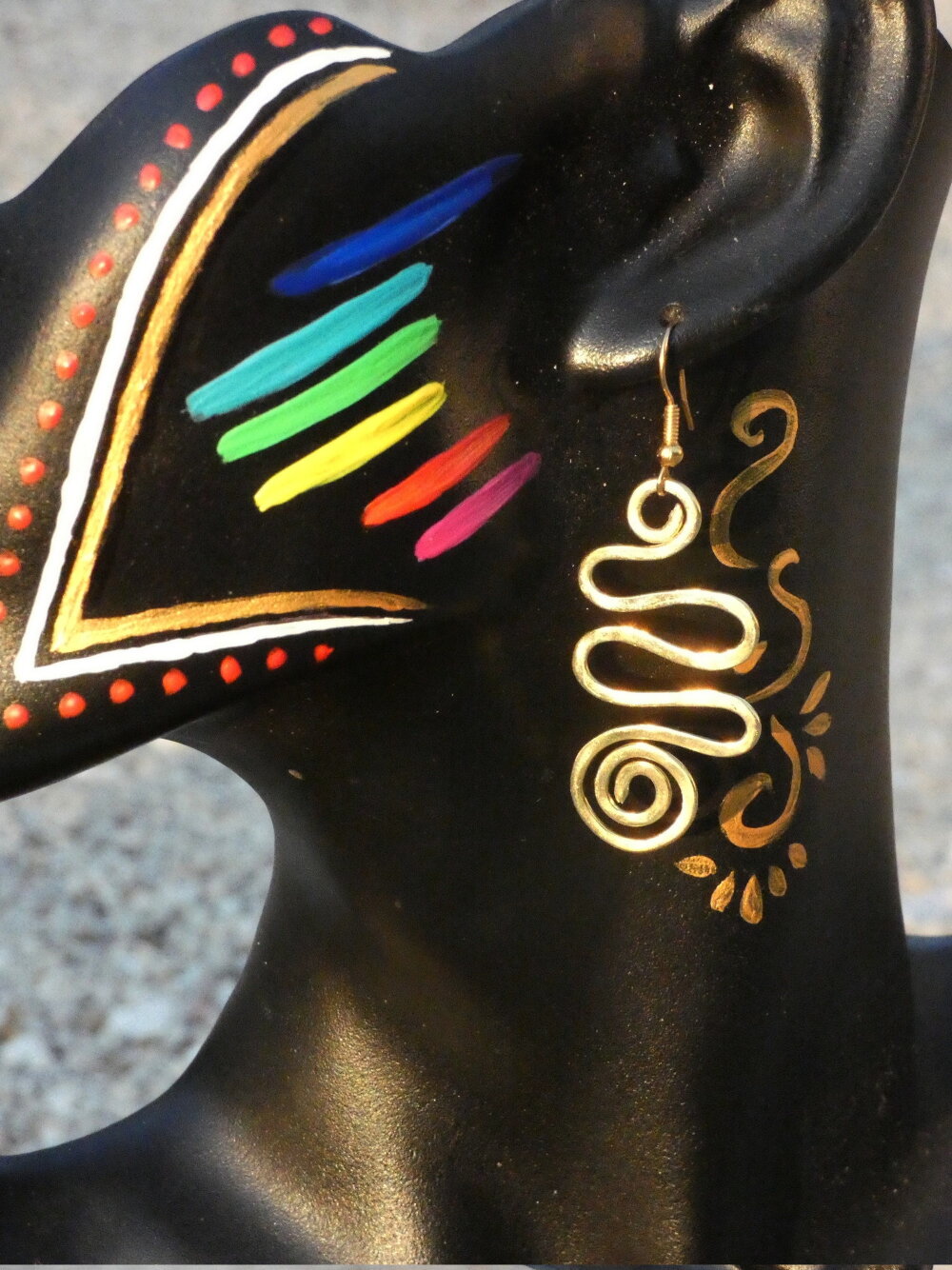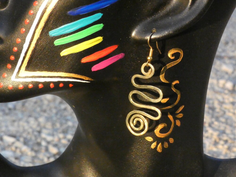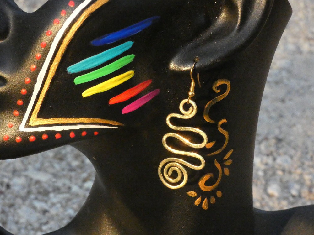 Je vous propose de découvrir une superbe paire de pendants d'oreilles pour oreilles percées inspiré des bijoux inca et maya que j'ai intégralement réalisés à partir de fil de laiton doré provenant de mon fournisseur basé sur Paris.