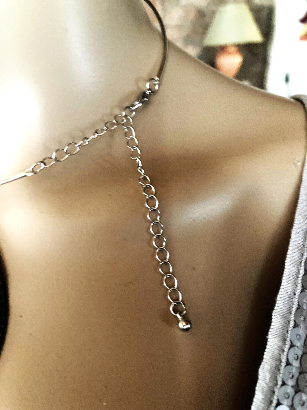 Attention plutôt pour petit cou malgré la chaînette de 10 cm, possibilité de remplacer le cercle par un cordon noir.