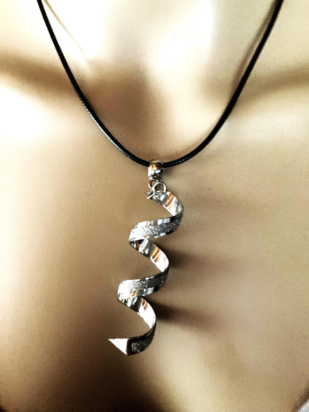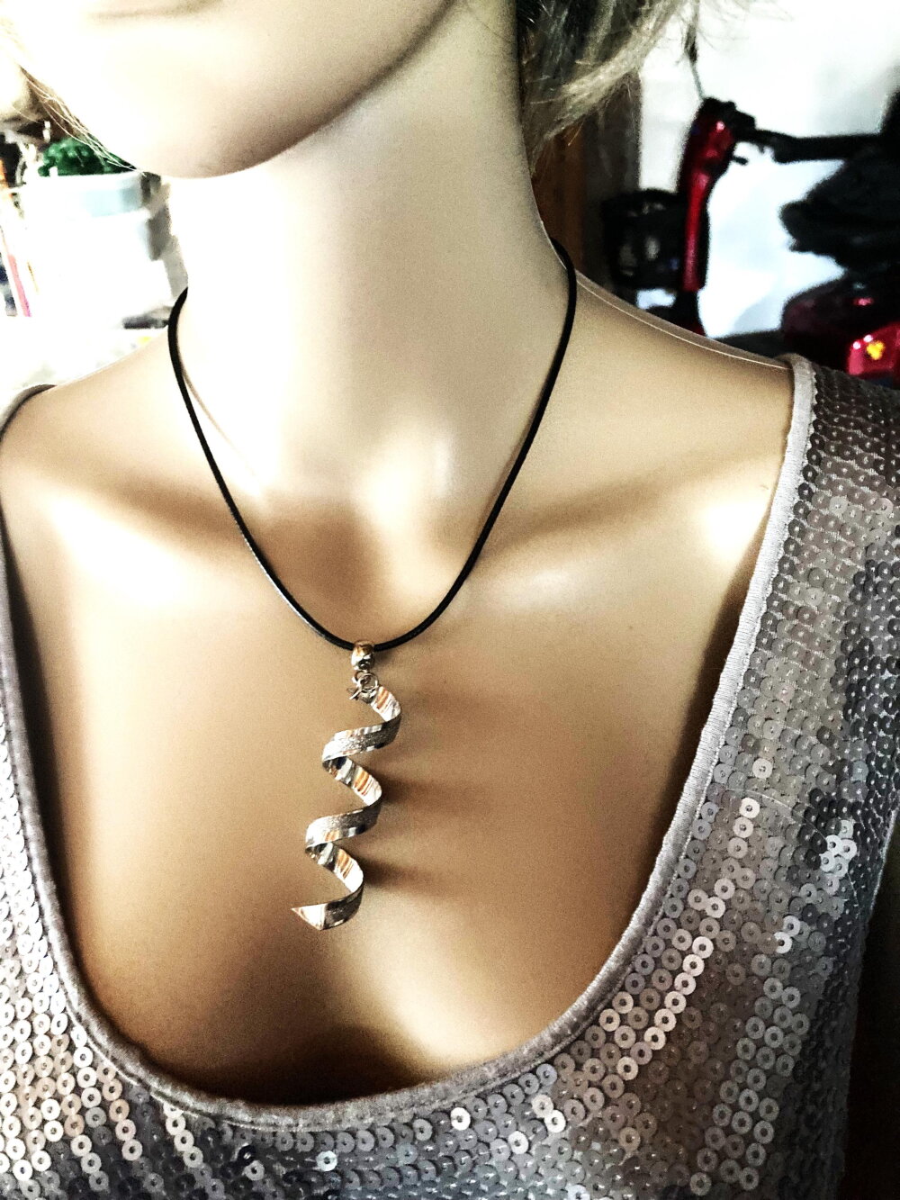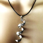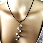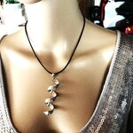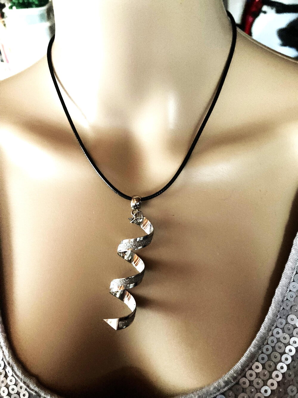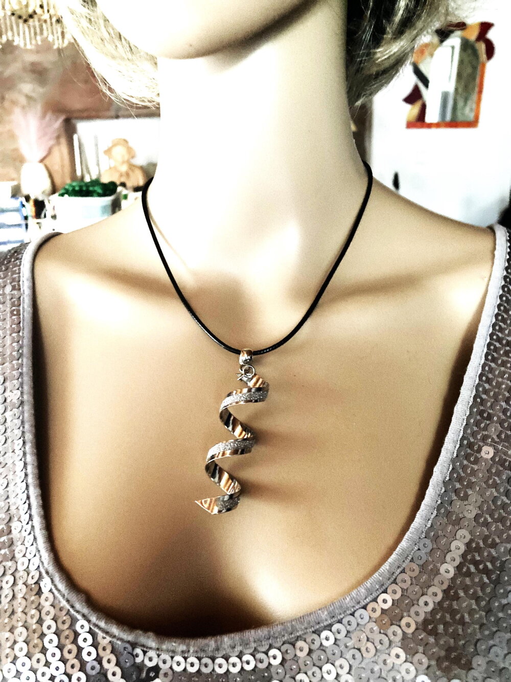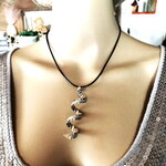 Pendentif élégant en métal argenté strass sur collier cordon en coton ciré noir. Peut facilement être porté sur une chaîne en argent. Bijou femme.