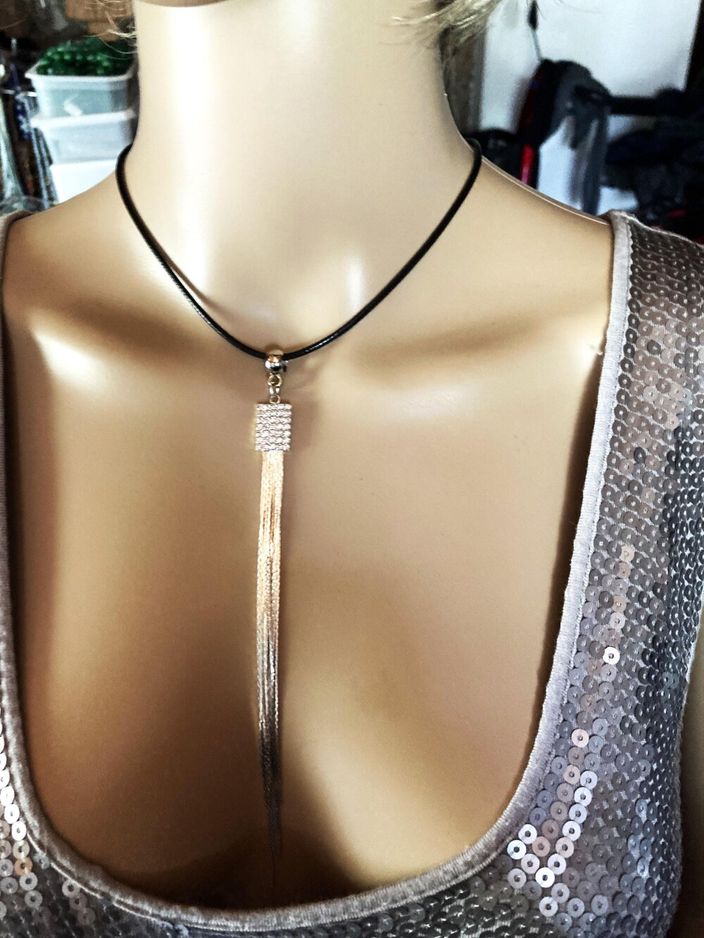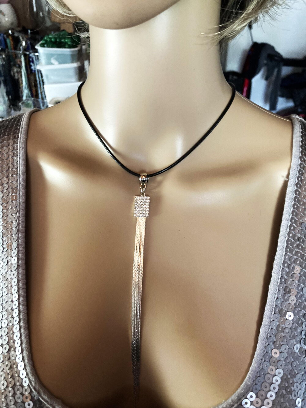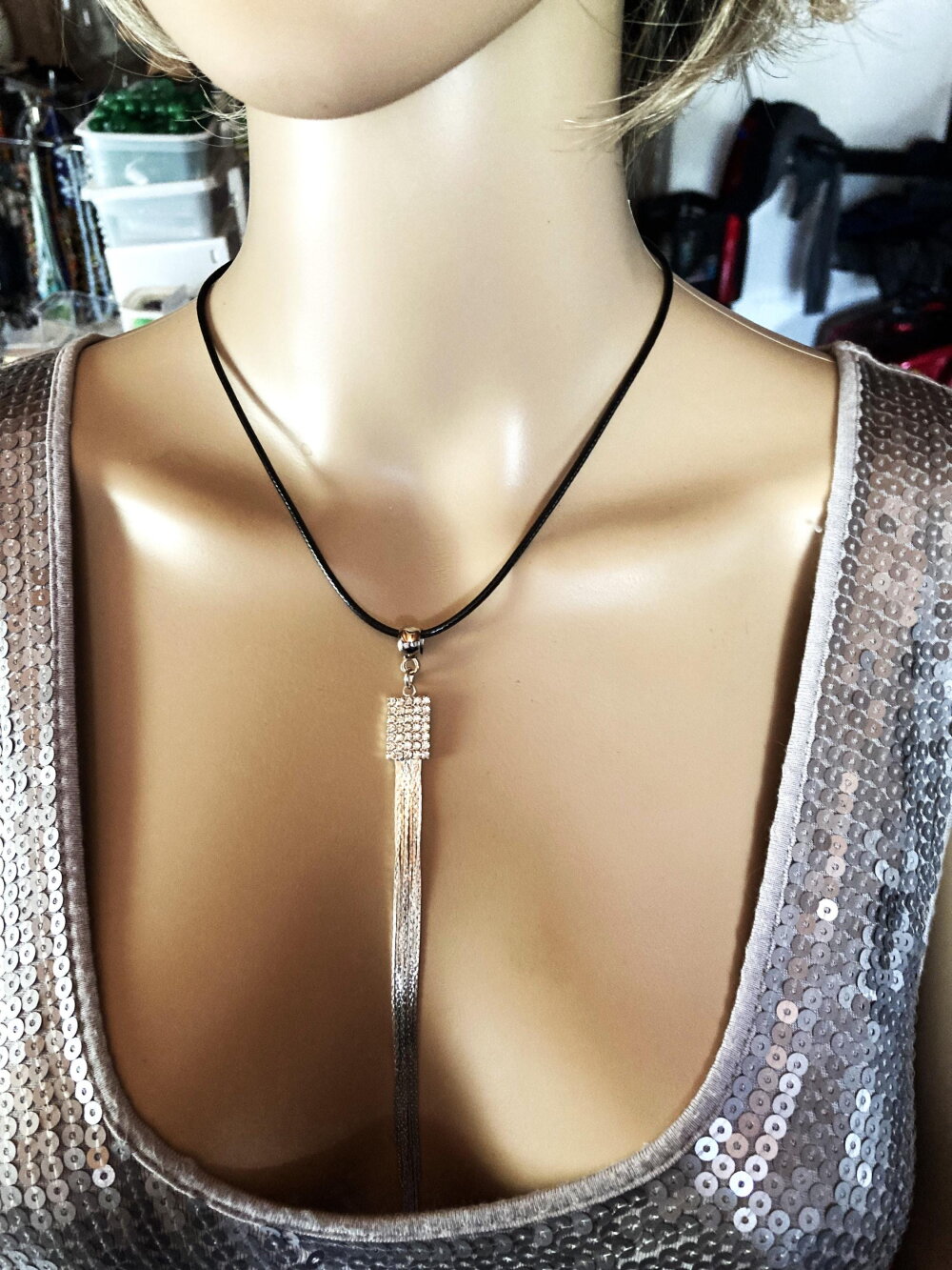 Pendentif élégant sur collier cordon en coton ciré noir 45/50 cm Bijou femme