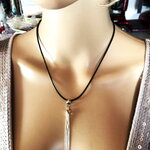 Pendentif élégant sur collier cordon en coton ciré noir 45/50 cm Bijou femme