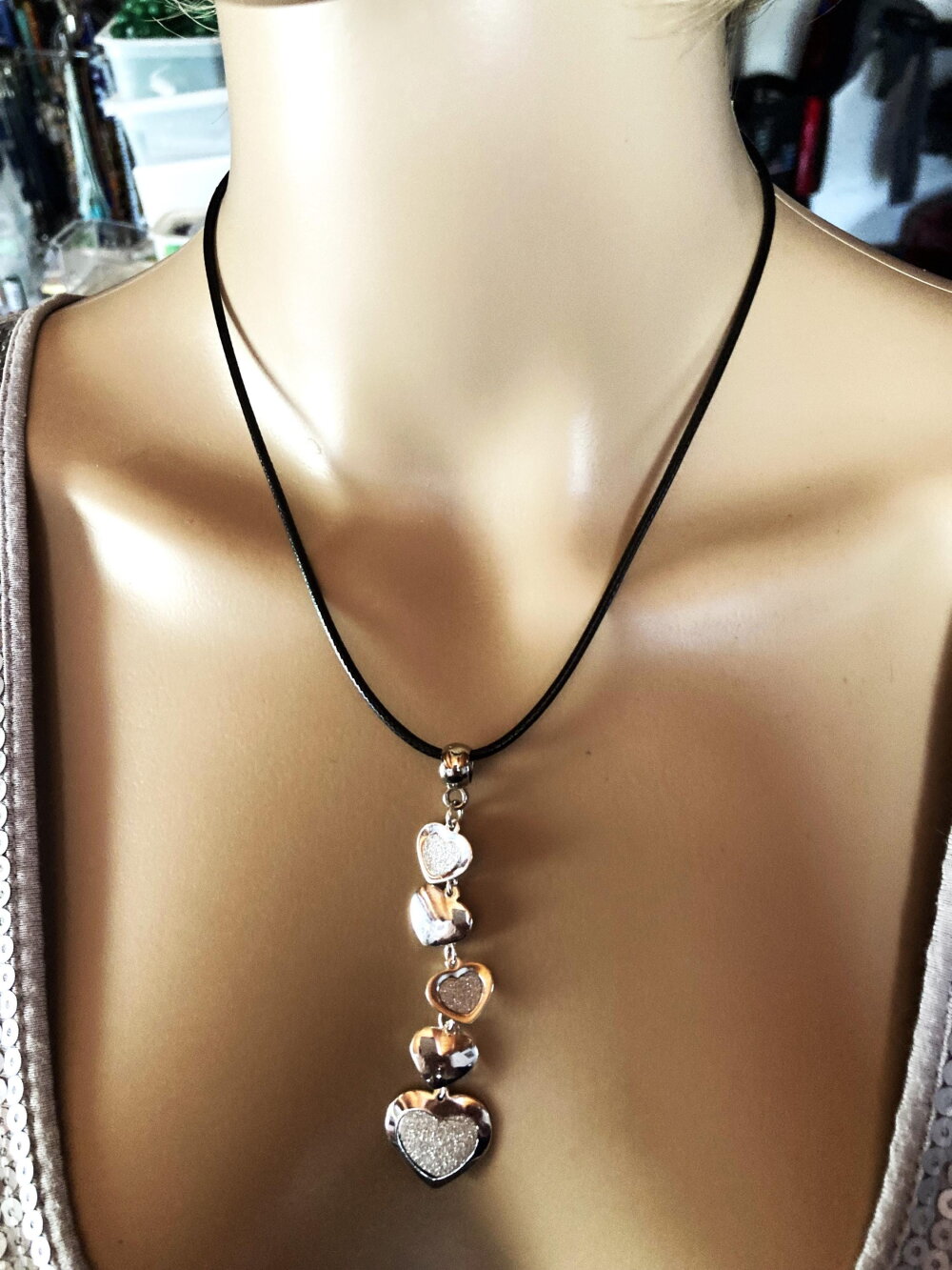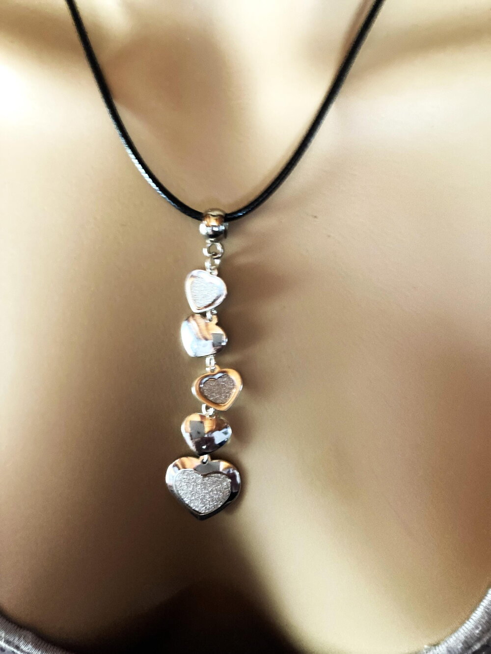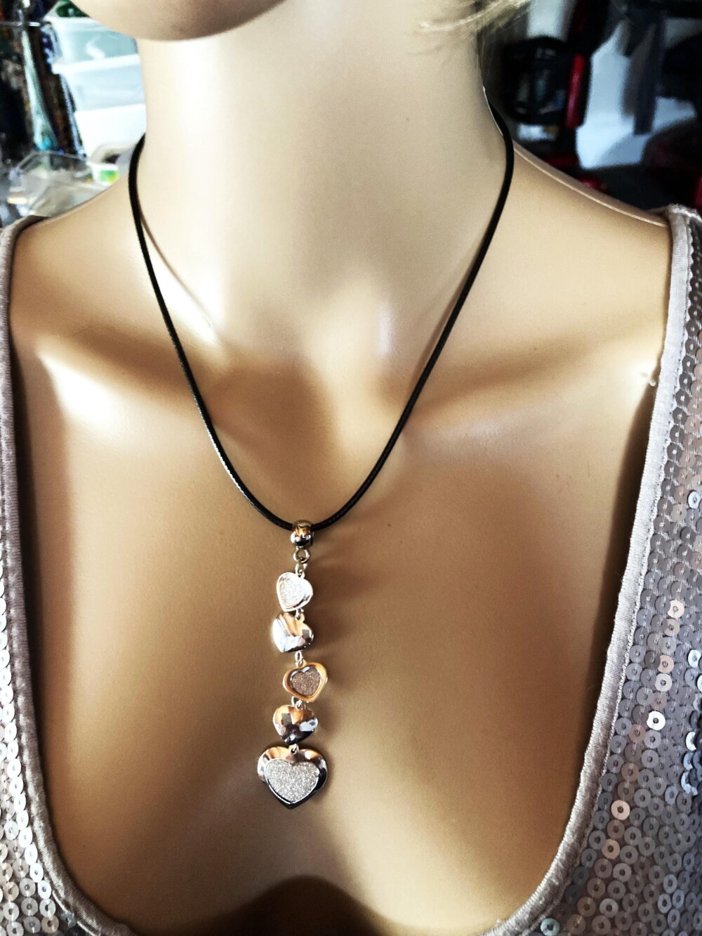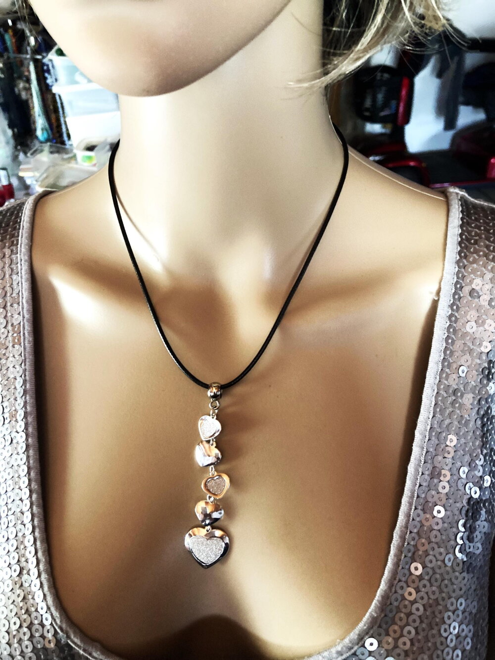 Pendentif élégant sur collier cordon en coton ciré noir 45/50 cm Bijou femme