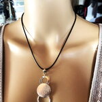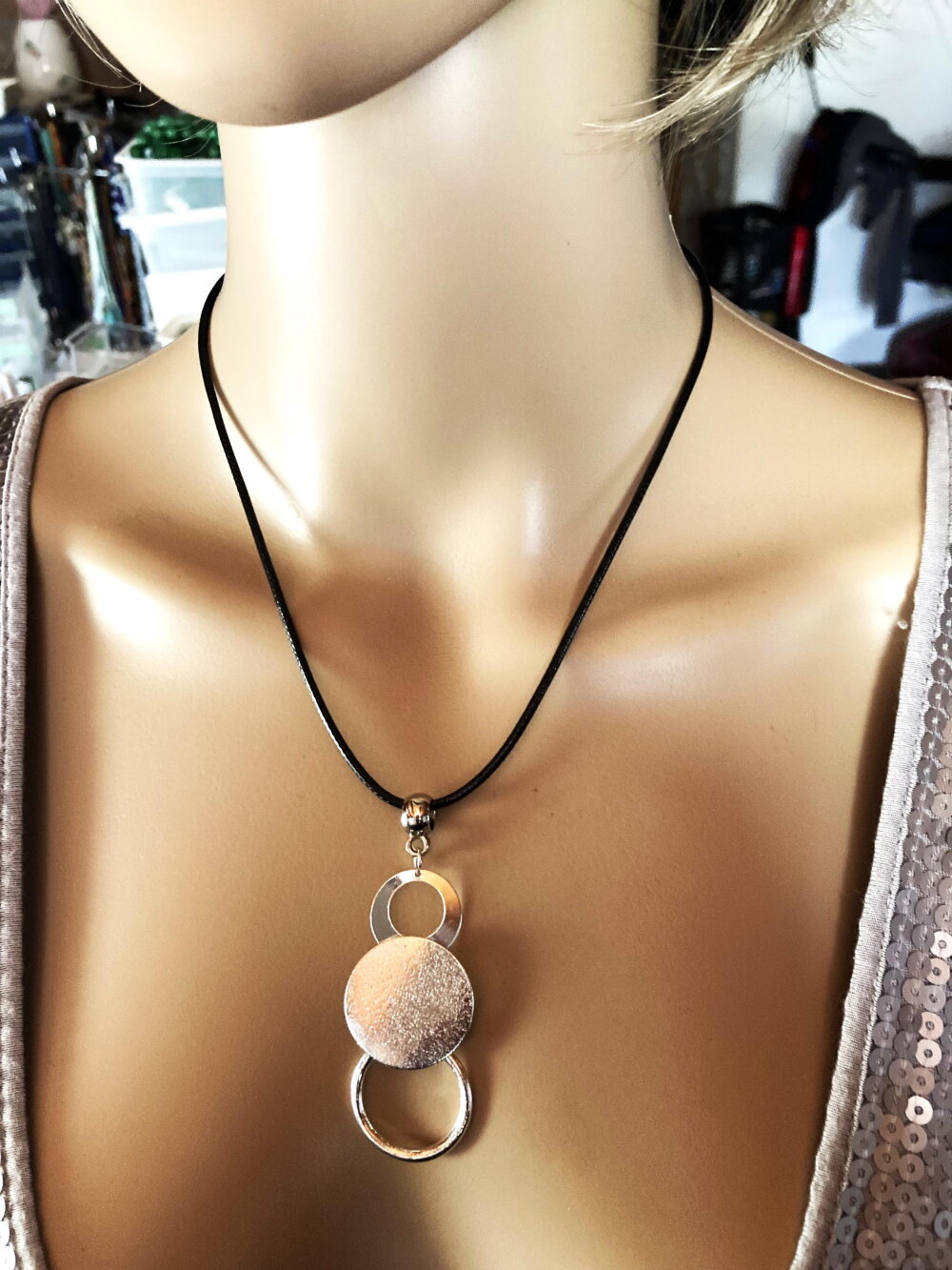 Pendentif élégant sur collier cordon en coton ciré noir 45/50 cm Bijou femme