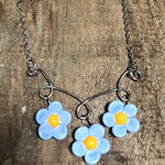 délicat petit pendentif avec avec trois petites fleurs myosotis.