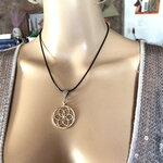 Très beau pendentif original en acier inoxydable sur collier cordon en coton ciré noir. Bijou femme.