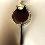 Pendentif métal doré et bordeaux sur collier/sautoir chaîne 55/60 cm dorée Bijou femme