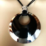 Pendentif métal noir et argent sur collier/sautoir jeu de 2 cordons noir 65/70 cm Bijou femme