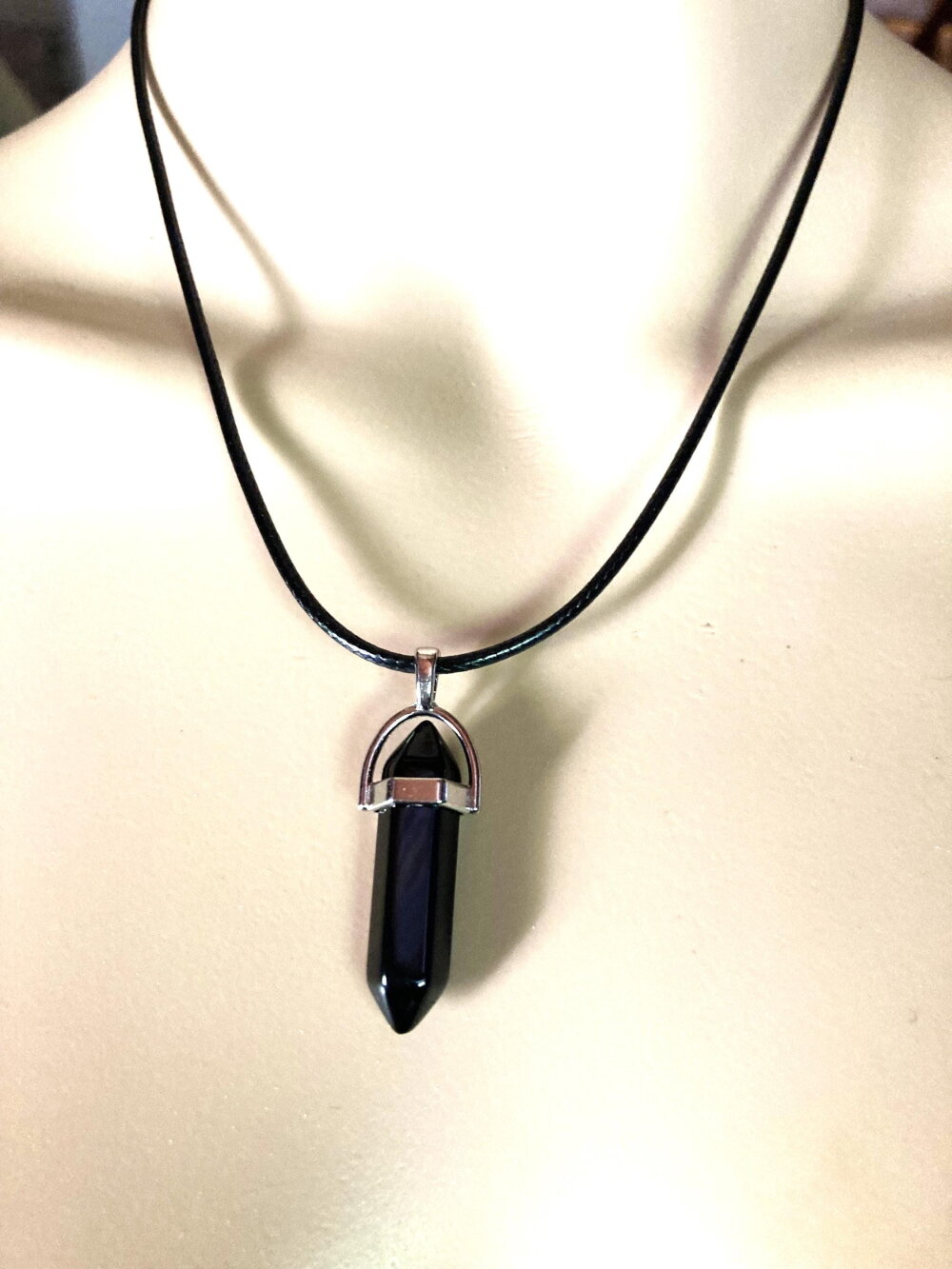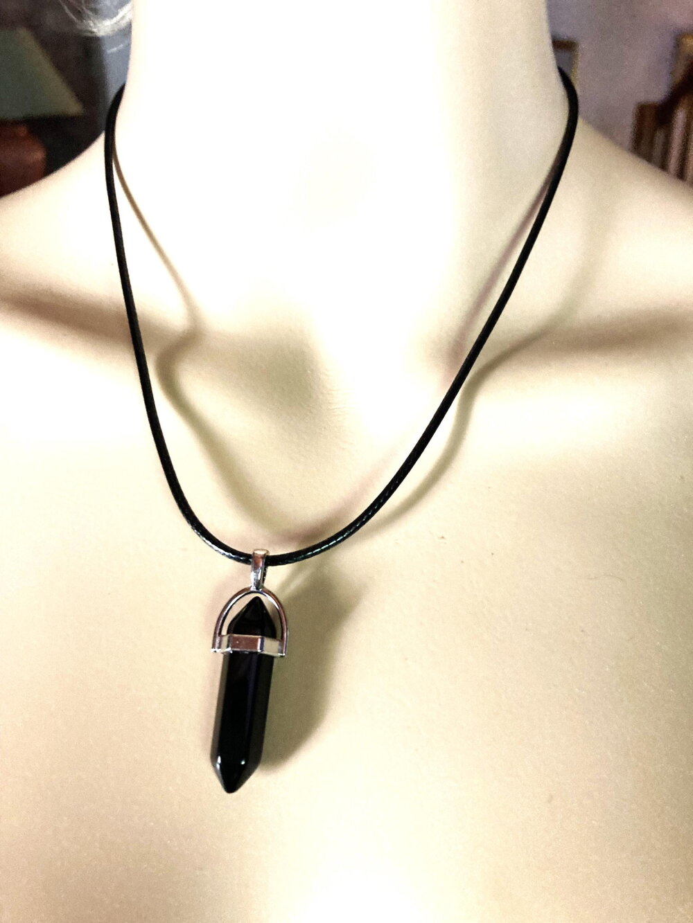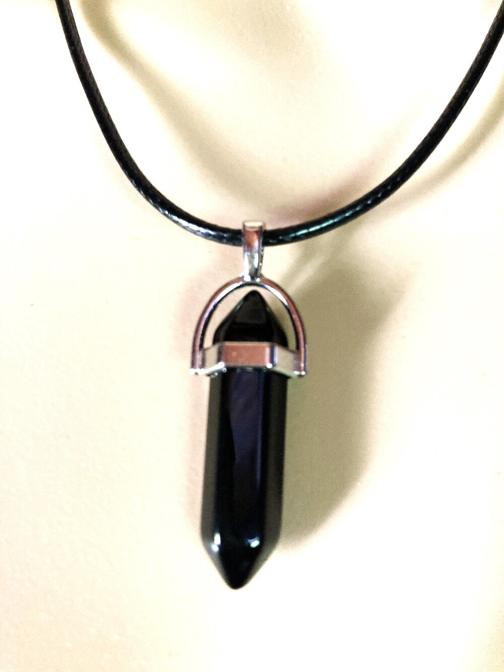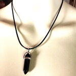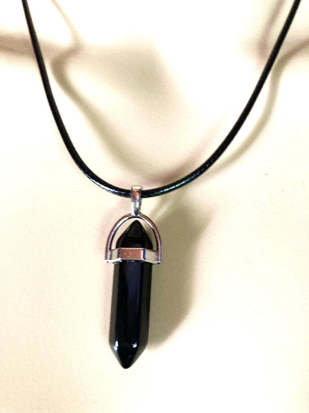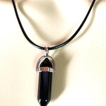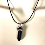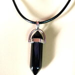 Pendentif onyx noir pierre pointe sur collier cordon noir 45/50 cm bijou homme femme