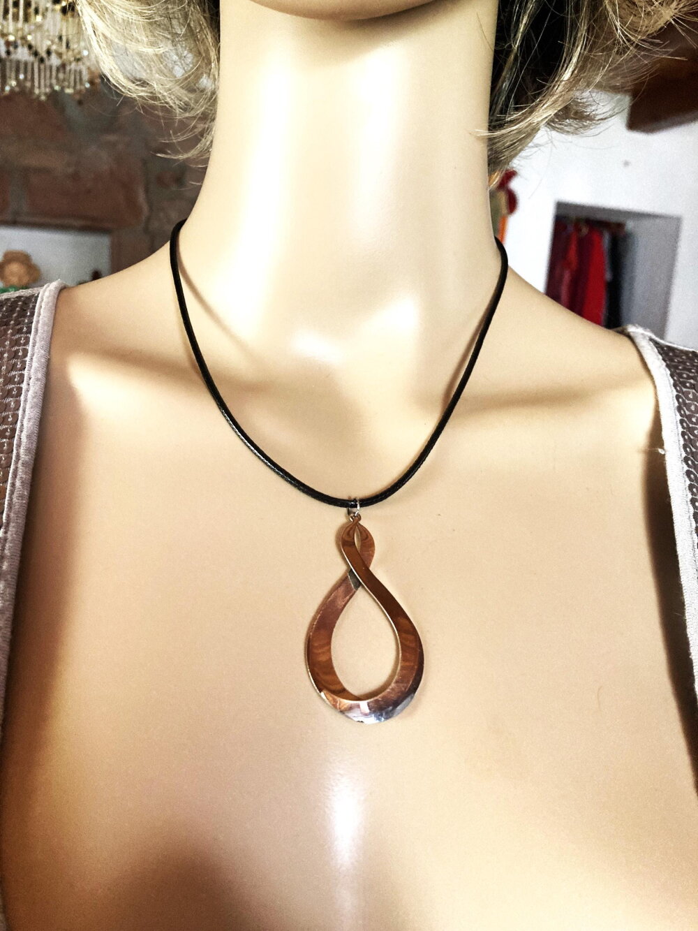 Pendentif original en métal sur collier cordon en coton ciré noir 45/50 cm Bijou femme