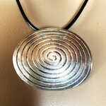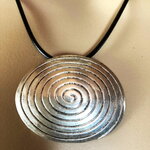 Pendentif oval en métal argenté.