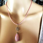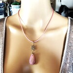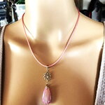 Pendentif pierre en agate rose et fleur de lotus sur collier cordon rose ou noir 45/50 cm bijou femme